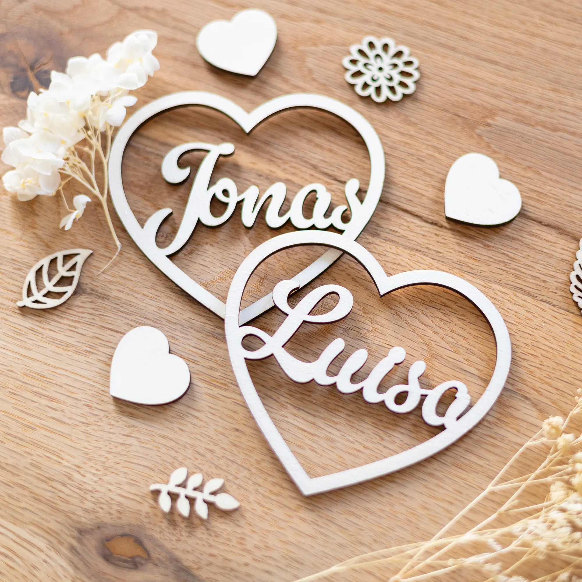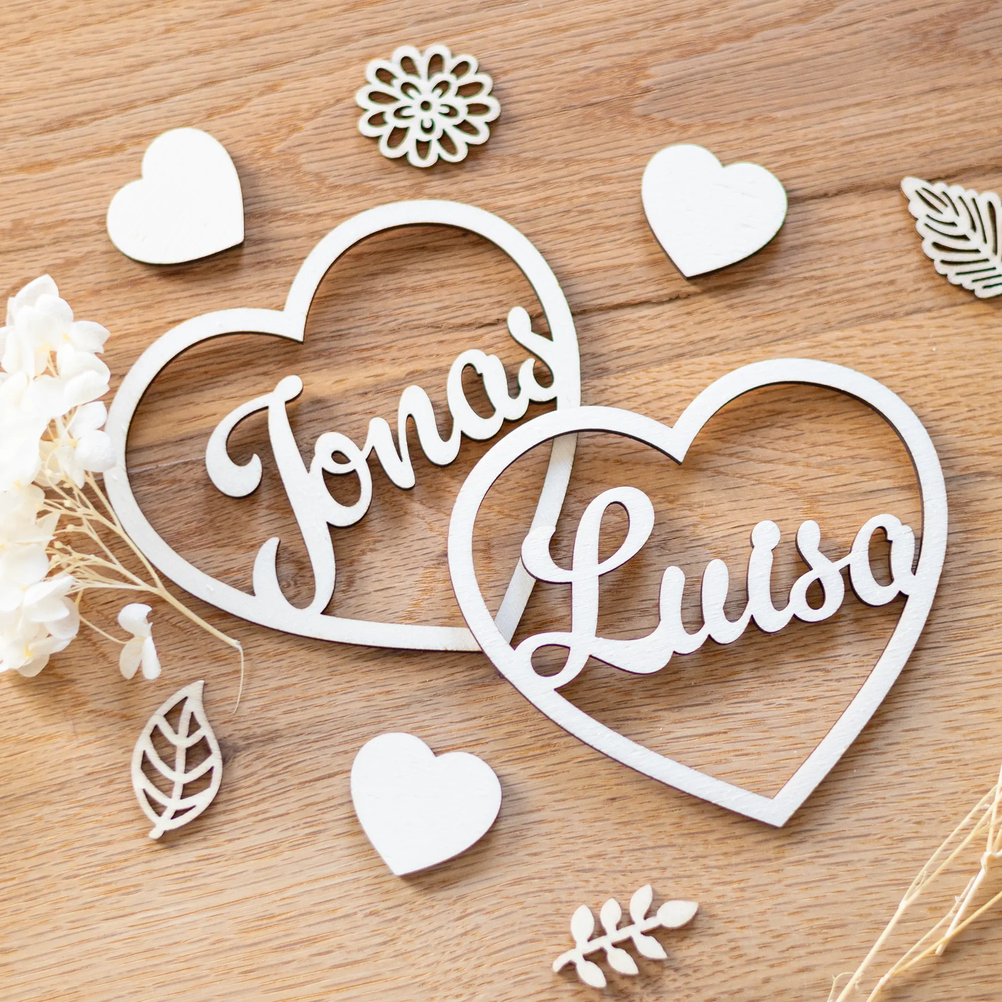 Doch die wunderschönen Herzen mit Namen einen sich nicht nur als Geschenk für euren Partner oder eure Partnerin. Sie sind auch perfekte Namenskarten für Hochzeiten, Geschenke für den besten Freund oder die beste Freundin oder einfach als liebevolle Geste. Besonders als Gastgeschenk für Hochzeitsgäste hinterlassen die Herzen einen bleibenden Eindruck, ebenso wie als Geschenk für das Brautpaar!