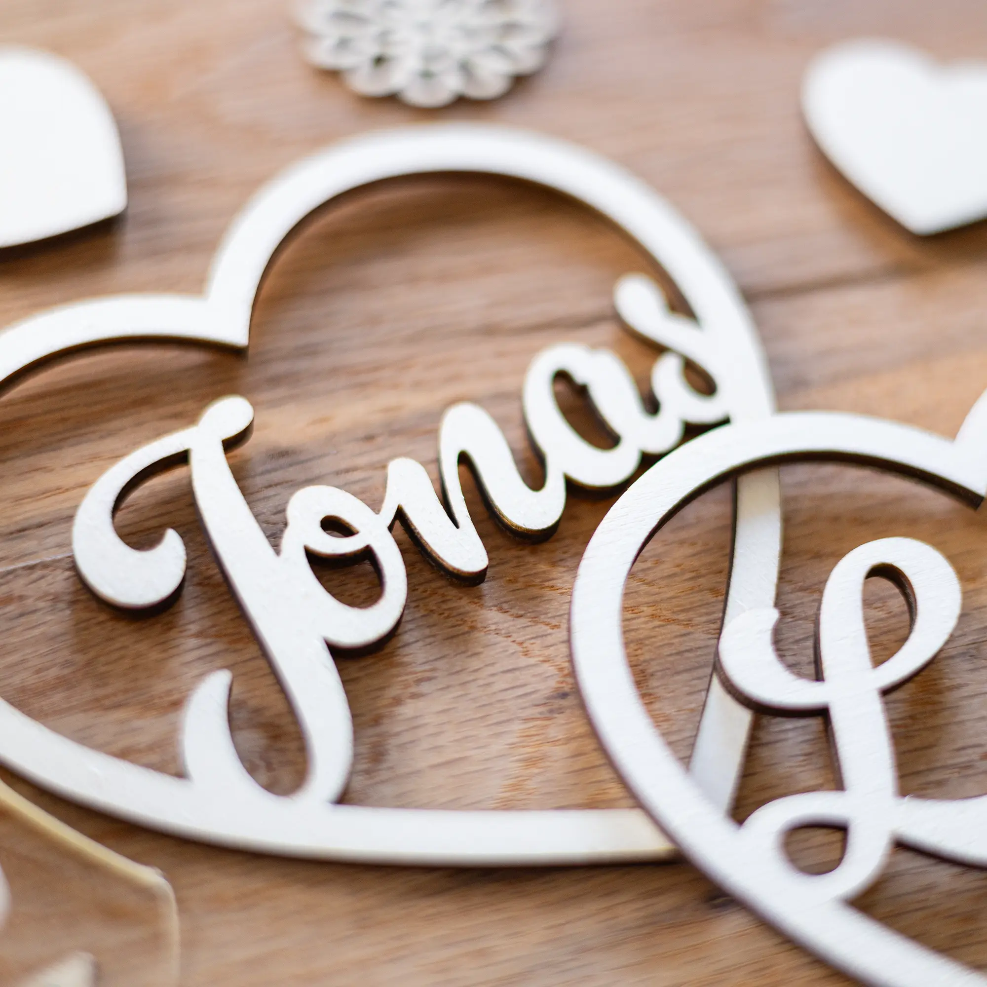 Verleiht euren Geschenken zum Valentinstag, Jahrestag oder anderen besonderen Anlässen eine persönliche Note mit unserem individualisierten Holzherz. In der Mitte des präzise lasergeschnittenen Herzens könnt Ihr eure gewünschten Namen einfügen, was dem Herz eine ganz besondere Bedeutung verleiht. Es lässt sich wunderbar mit anderen Geschenken oder Blumensträußen kombinieren oder dient als charmantes Accessoire, um euer selbstgemachtes Geschenk zu vervollständigen.