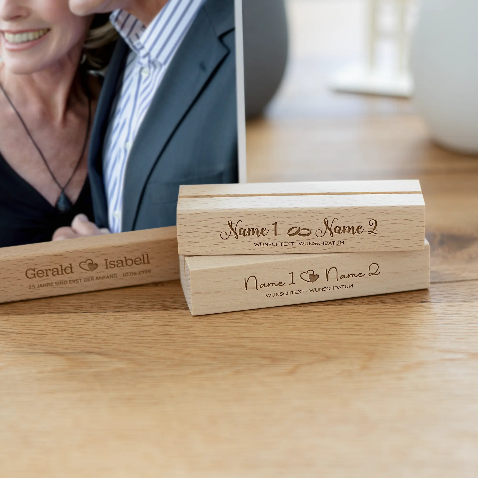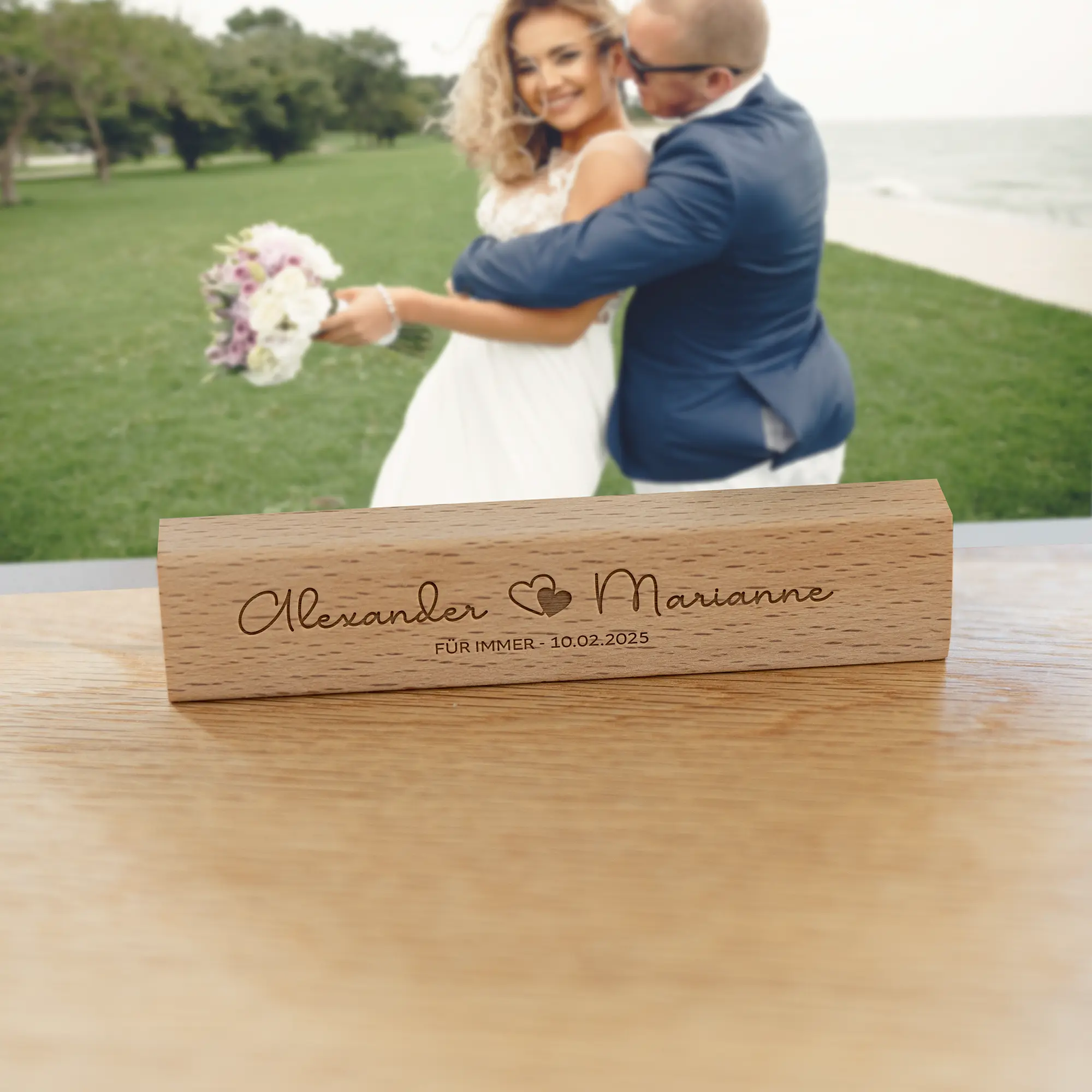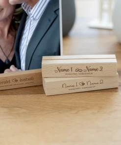 Zudem kann der Kartenhalter auch als Hochzeitsgeschenk zusammen mit einem schönen Erinnerungsfoto verschenkt werden. Die persönliche kleine Botschaft auf dem Kartenaufsteller macht ihn zu etwas ganz Besonderem.