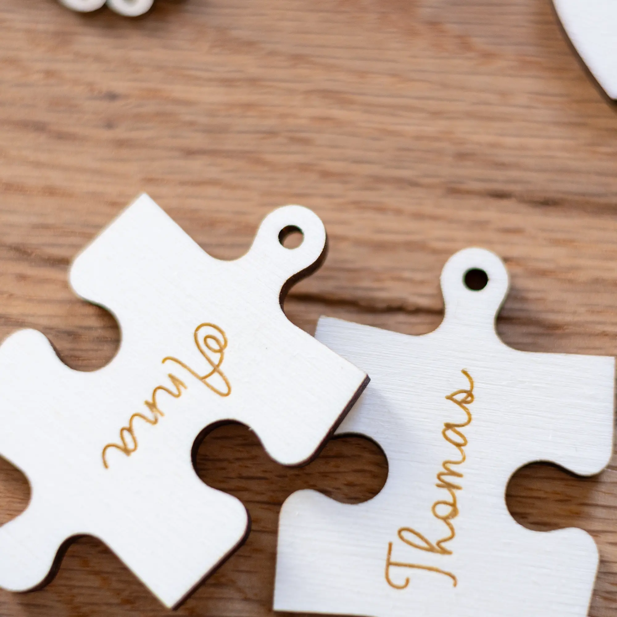 Personalisierte Puzzleteile mit Namen oder Wunschtext für Paare