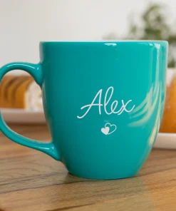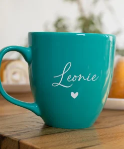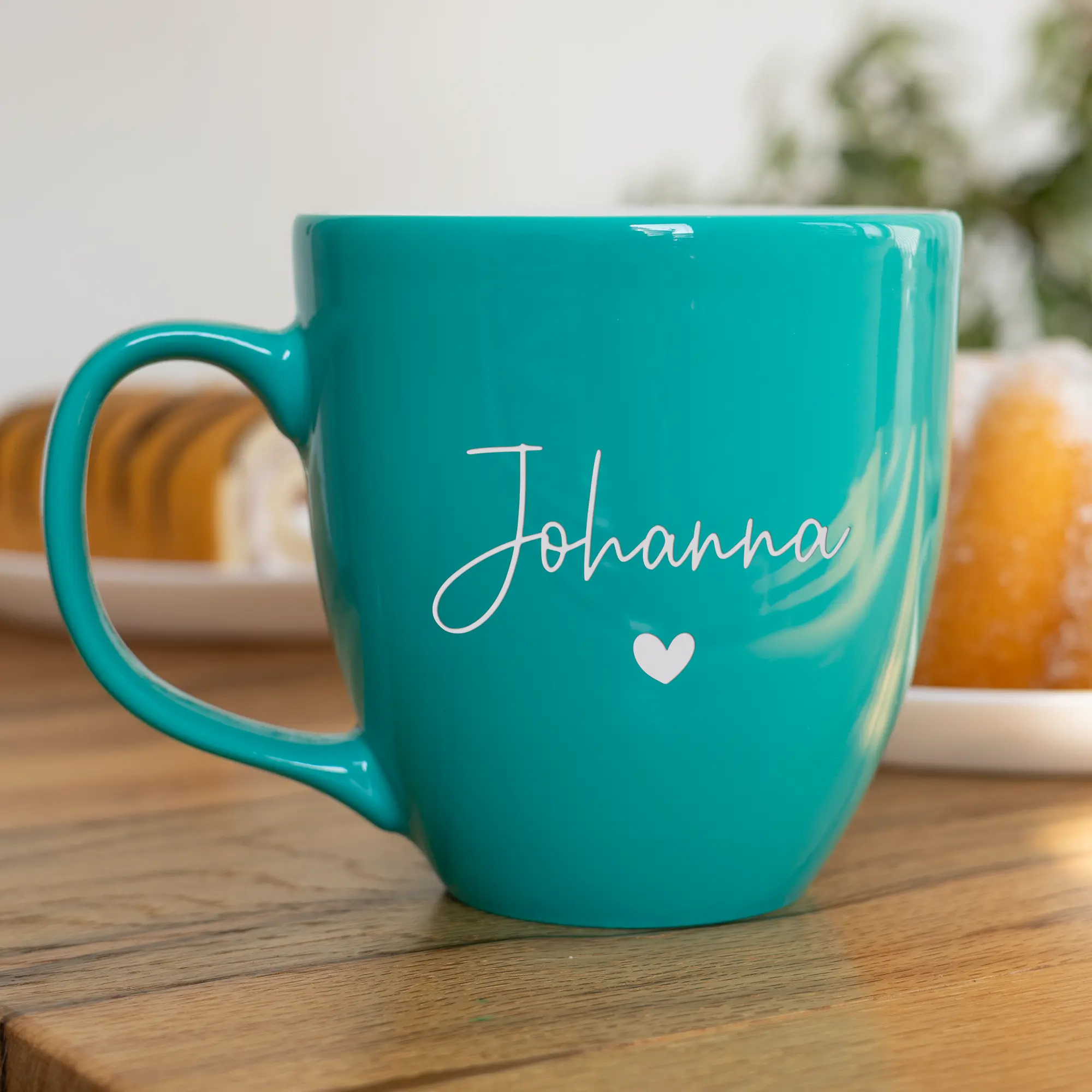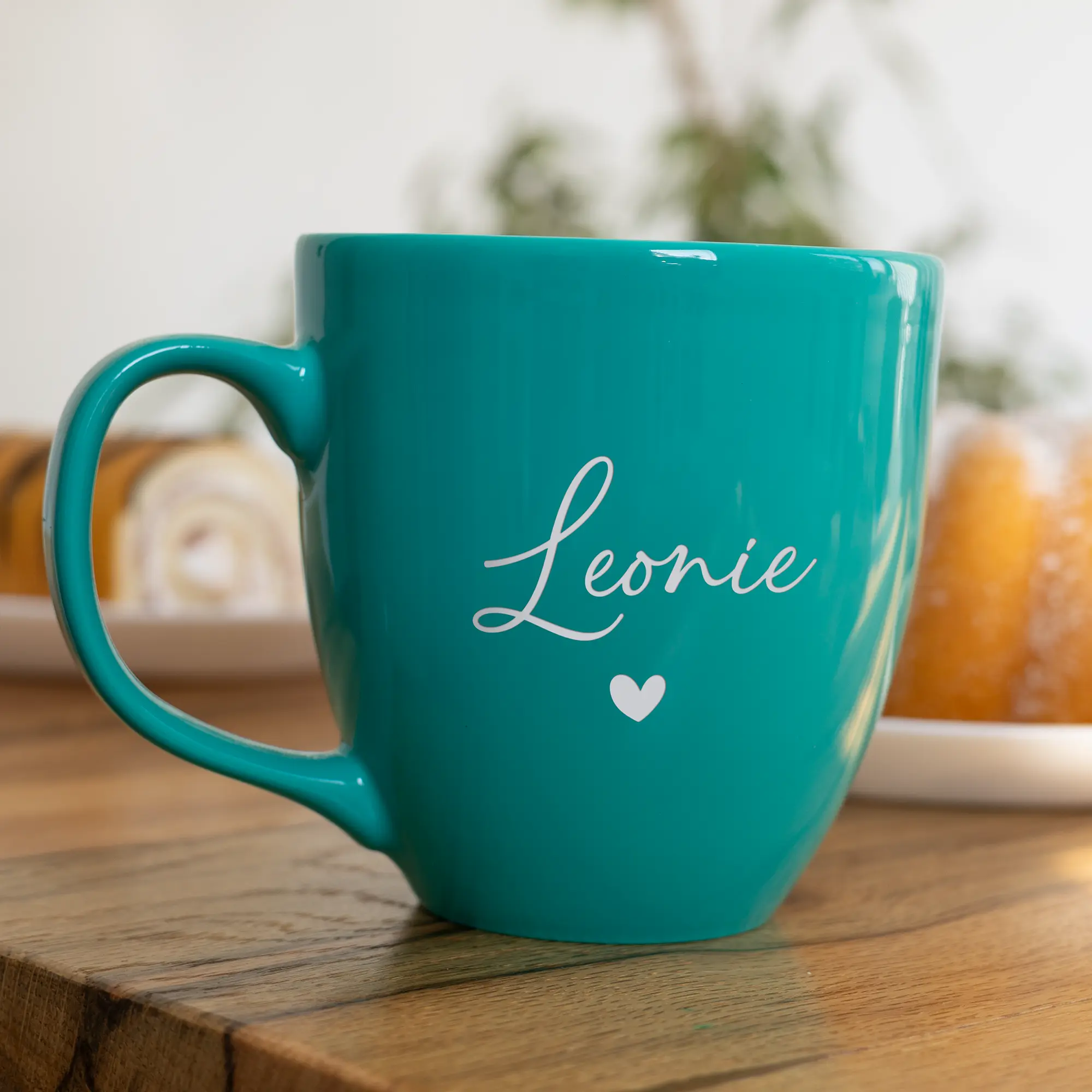 Eure personalisierte Tasse mit Namen und Herzsymbol in verschiedenen Farben als Geschenk für jeden Anlass