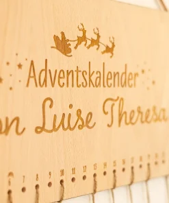 Unser „personalisierter Adventskalender aus Holz mit Namen“ ist der ideale Begleiter durch die Adventszeit. Nicht nur kann man ihn mit selbst gestalteten Säckchen ausstatten, sondern er sieht mit seinem wunderschönen Weihnachtsmannmotiv und dem naturbelassenen Material auch noch superschick aus und wir euch und euren Kindern sehr viel Freude bereiten. Er lässt sich mit einem Wunschnamen mittels präziser Lasergravur personalisieren und eignet sich perfekt für kleine Bastler, die ihre Kalendersäckchen selbst gestalten möchten oder jeden, der seinen Adventskalender selbst befüllen möchte. Somit habt ihr nicht nur einen individuellen Adventskalender aus Holz, sondern auch eine ganz individuelle Überraschung an jedem Adventstag, bis es daran geht, gemeinsam Weihnachten zu feiern.