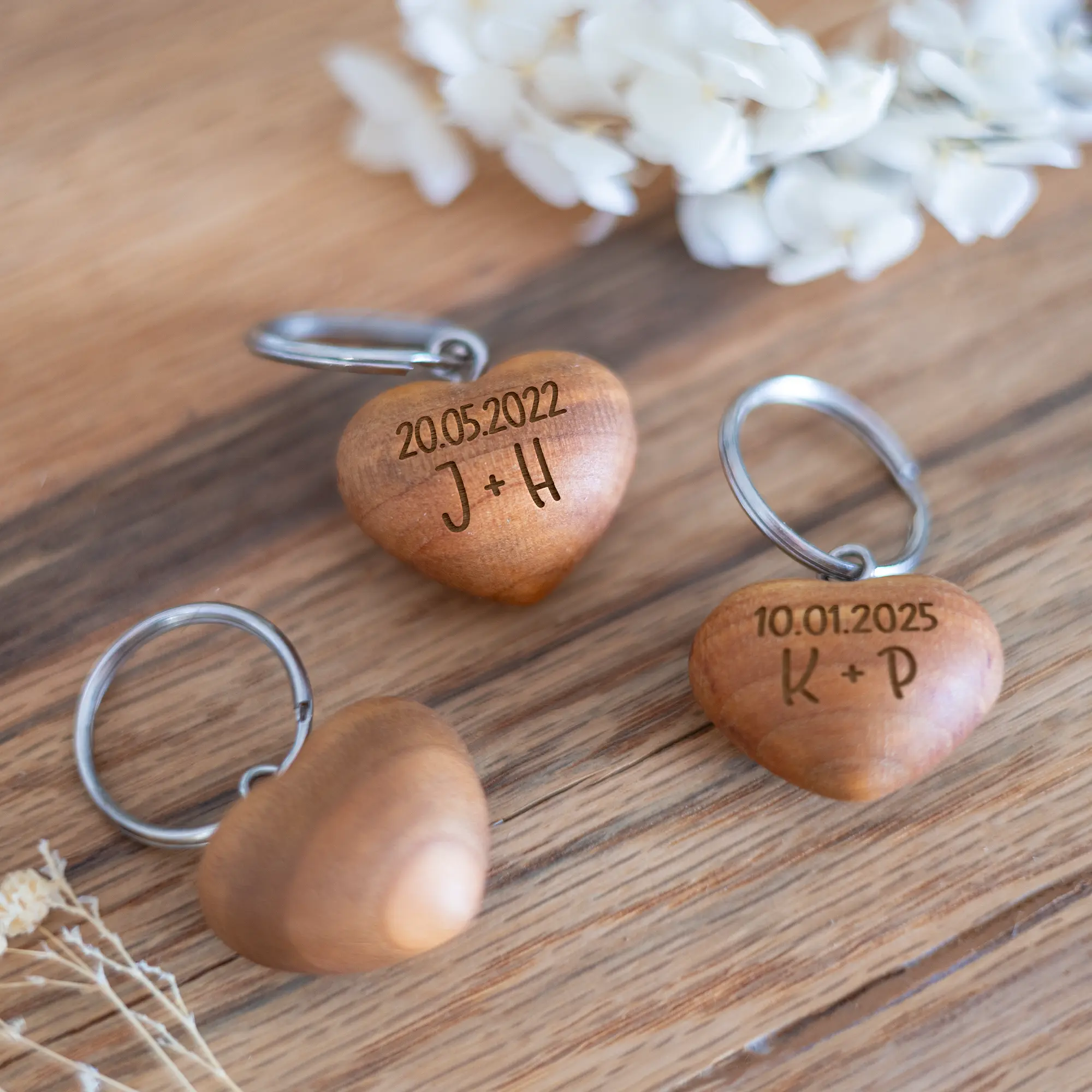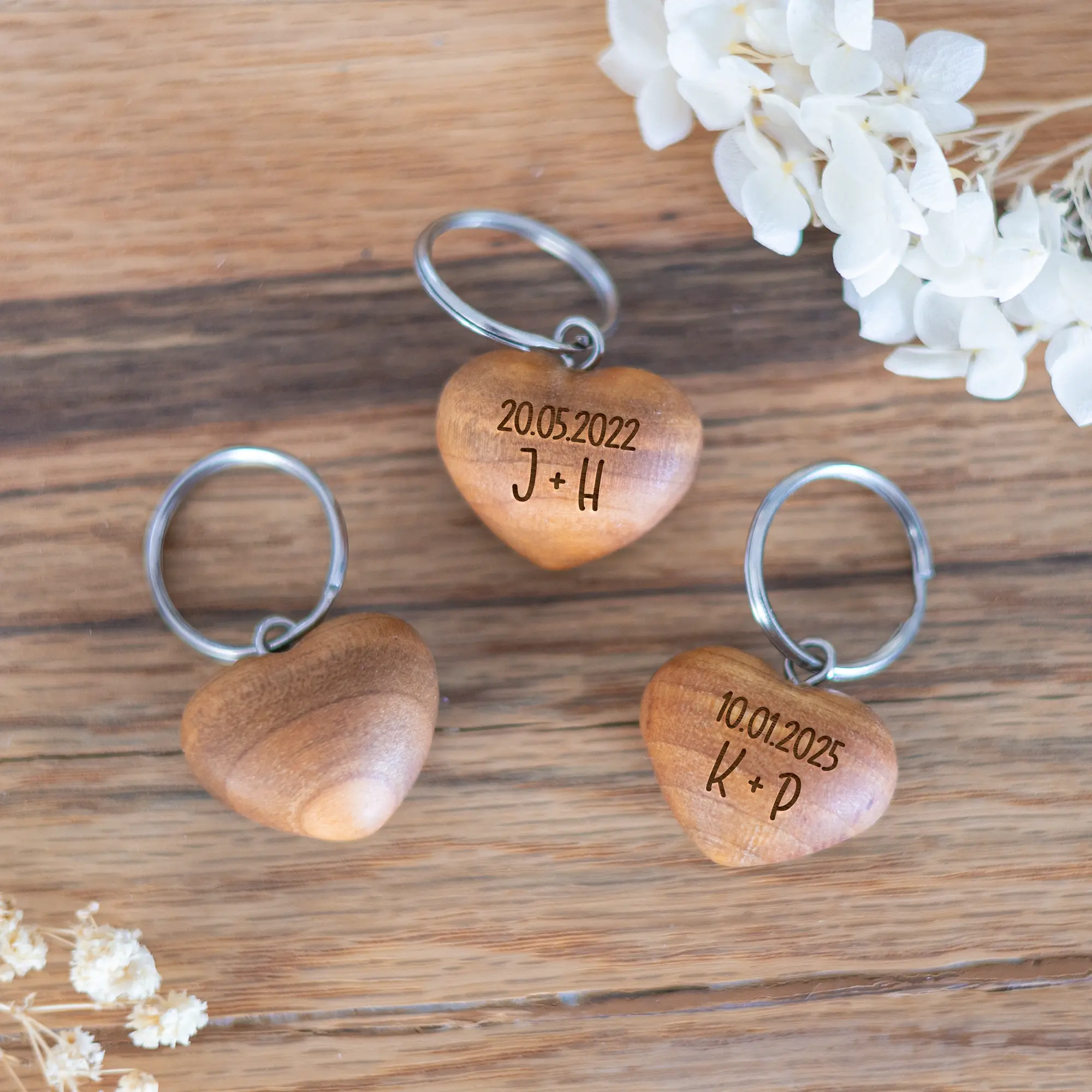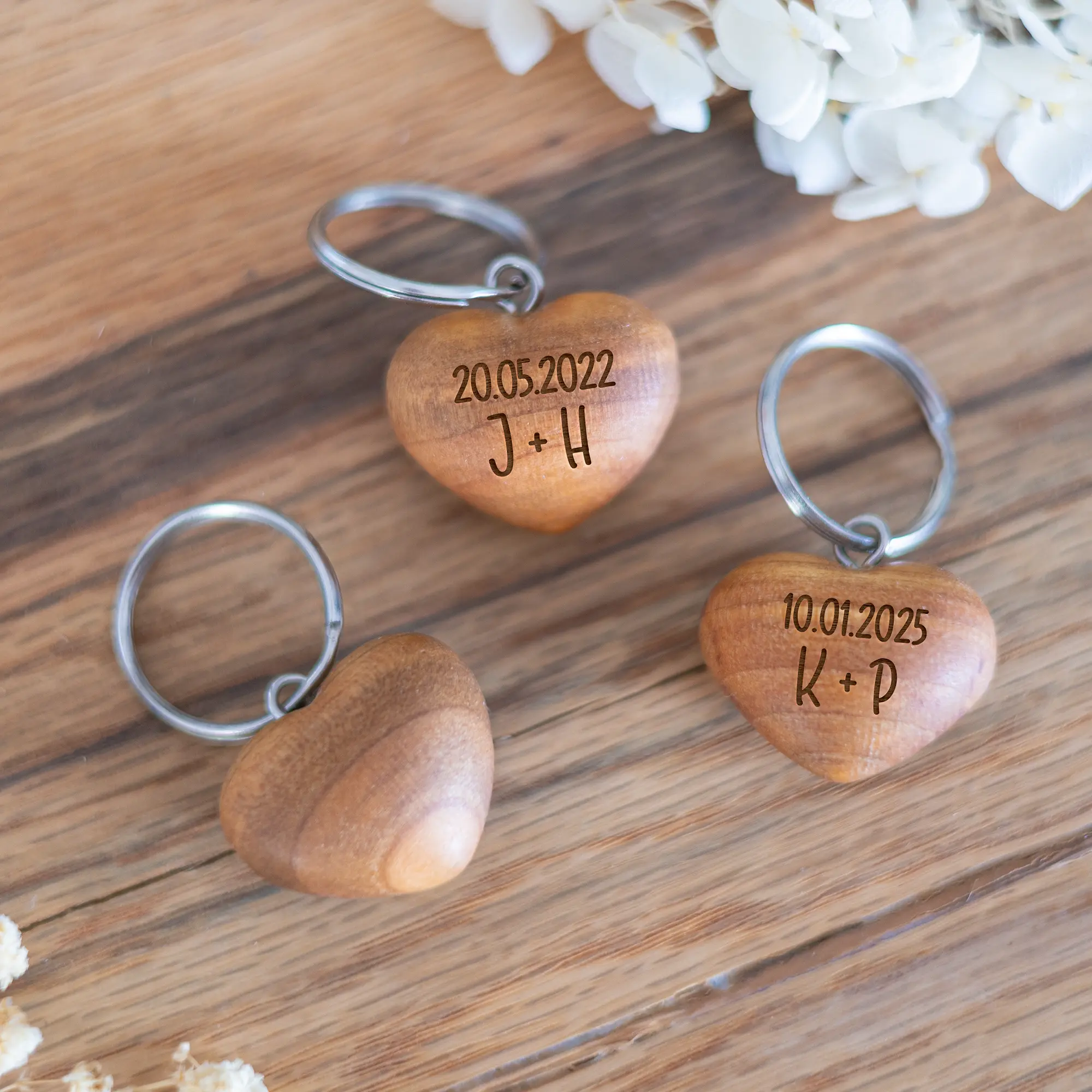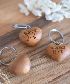 Überrascht eure Liebsten mit unseren personalisierten Schlüsselanhängern in Herzform aus Kirschholz.. Mit euren Initialen und eurem besonderen Wunschdatum wird dieser Anhänger zu einem einzigartigen Geschenk für den Valentinstag, Jahrestag oder einfach als romantische Geste.