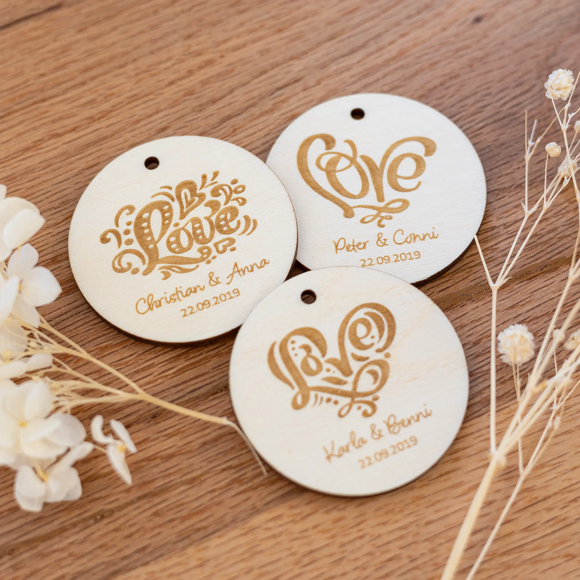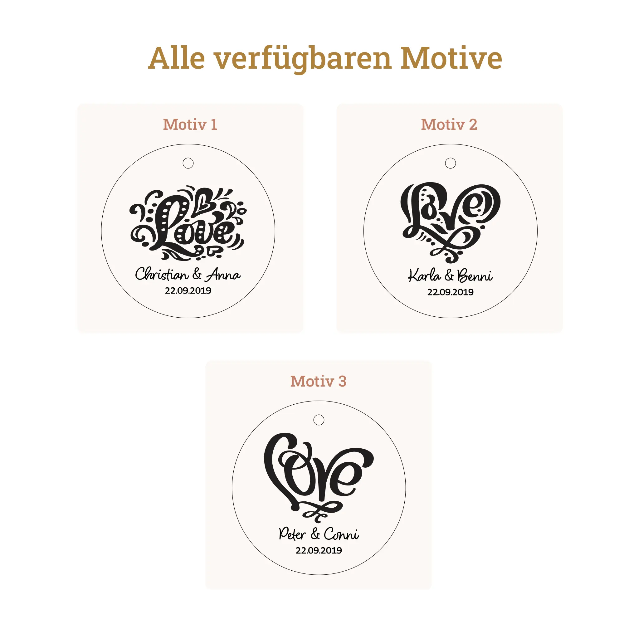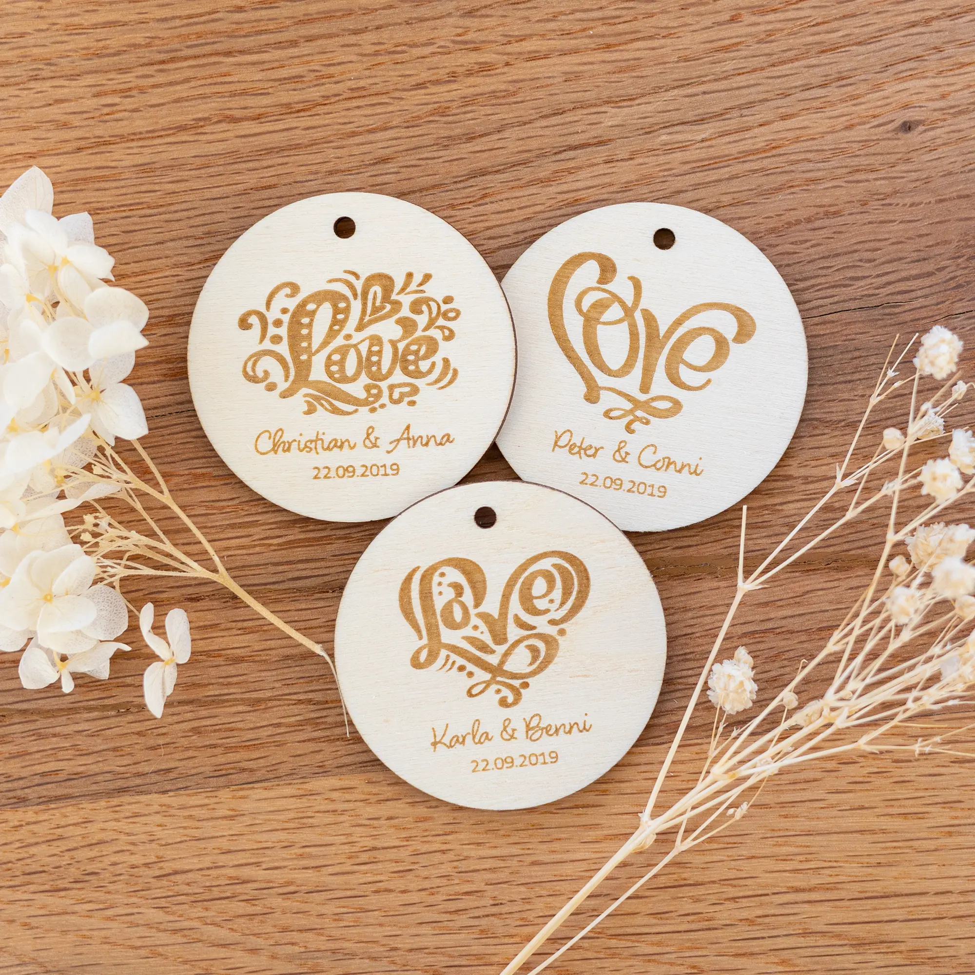Auch als Tischdekoration auf Hochzeiten oder zum Anbinden an die Hochzeitsgeschenke sind die vielseitigen Anhänger perfekt geeignet. Durch das kleine Loch am oberen Teil des Anhängers lassen sie sich ganz einfach mit einem Band an Geschenken, Geschenkkörben uvm. Befestigen.
