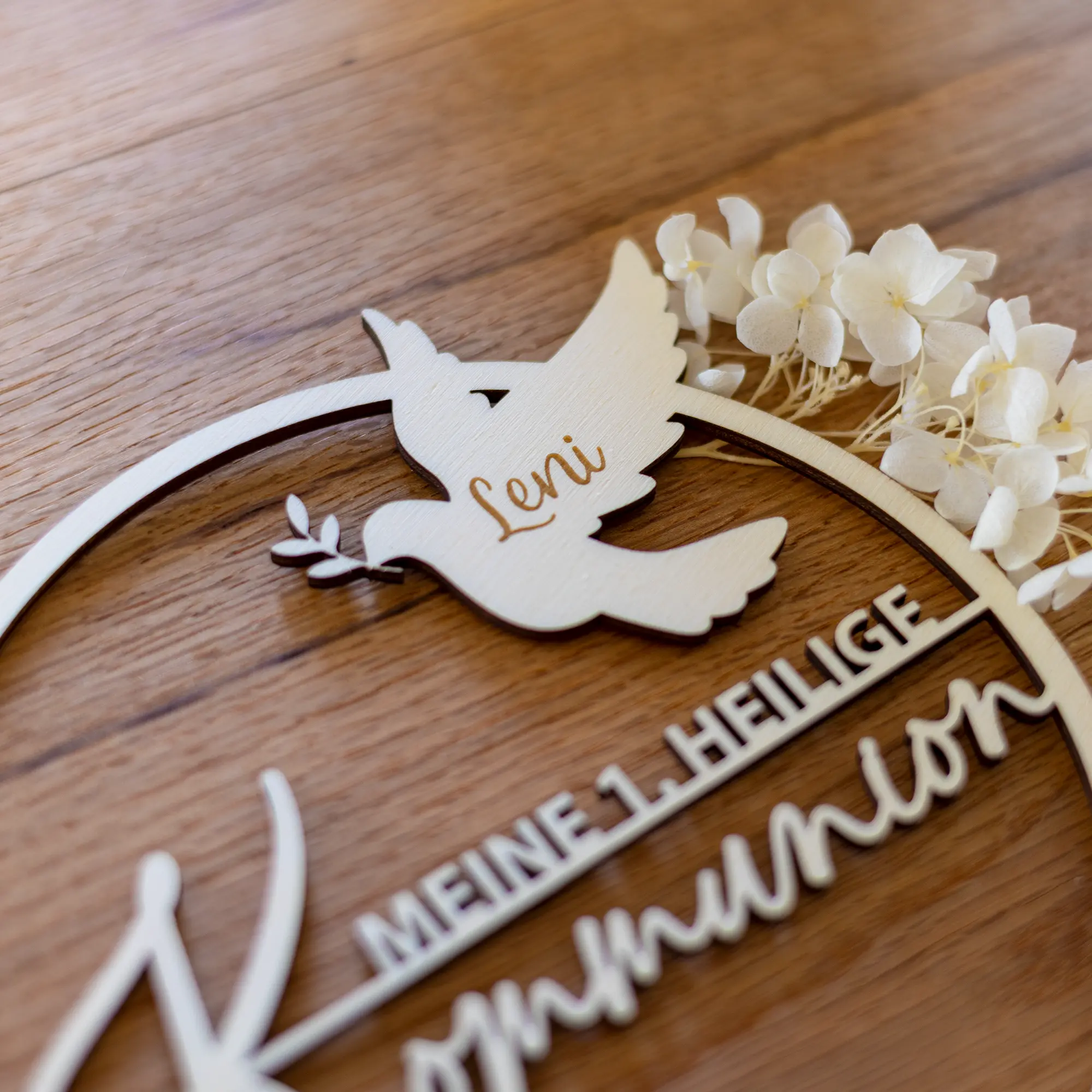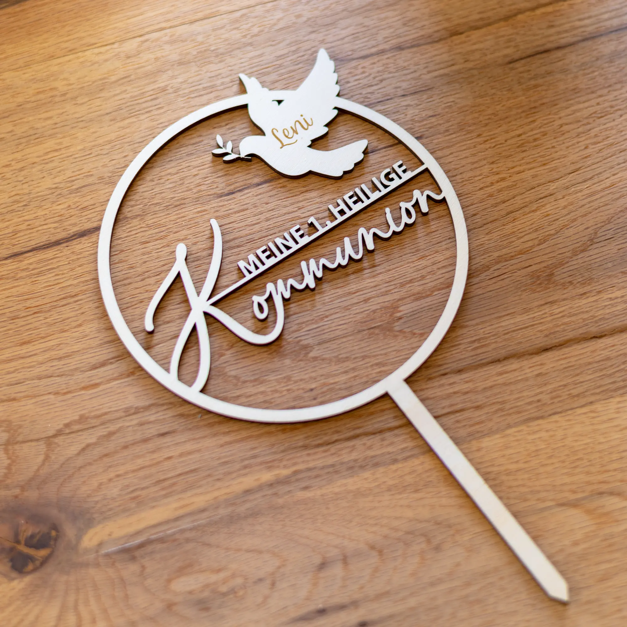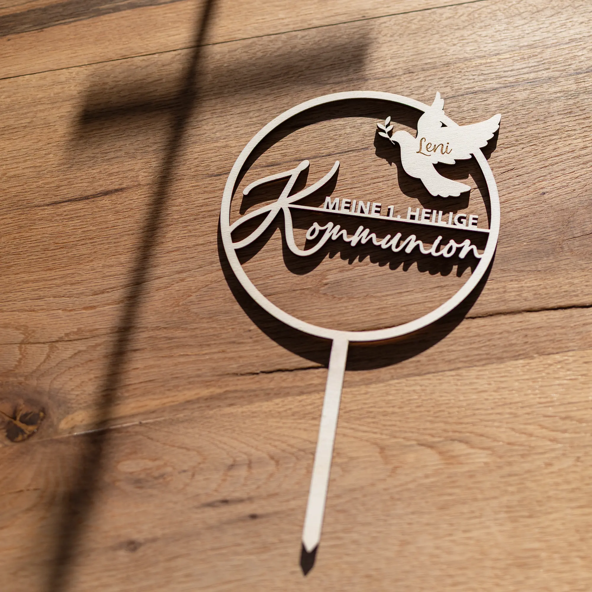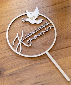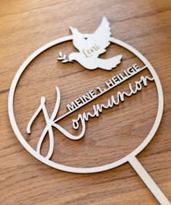 Der Caketopper zur 1. heiligen Kommunion Eures Kindes ist das ideale Geschenk zur Kommunion, Konfirmation, Taufe oder Firmung und wird garantiert zum Blickfang auf jeder Feier. Die sorgfältige Handarbeit und die natürlichen Materialien machen ihn zu einem wertvollen Erinnerungsstück. Entdeckt auch unsere anderen Produkte wie unsere Tischkarten, Holzkränze oder Serviettenringe im Shop, um Ihre Feier perfekt abzurunden.