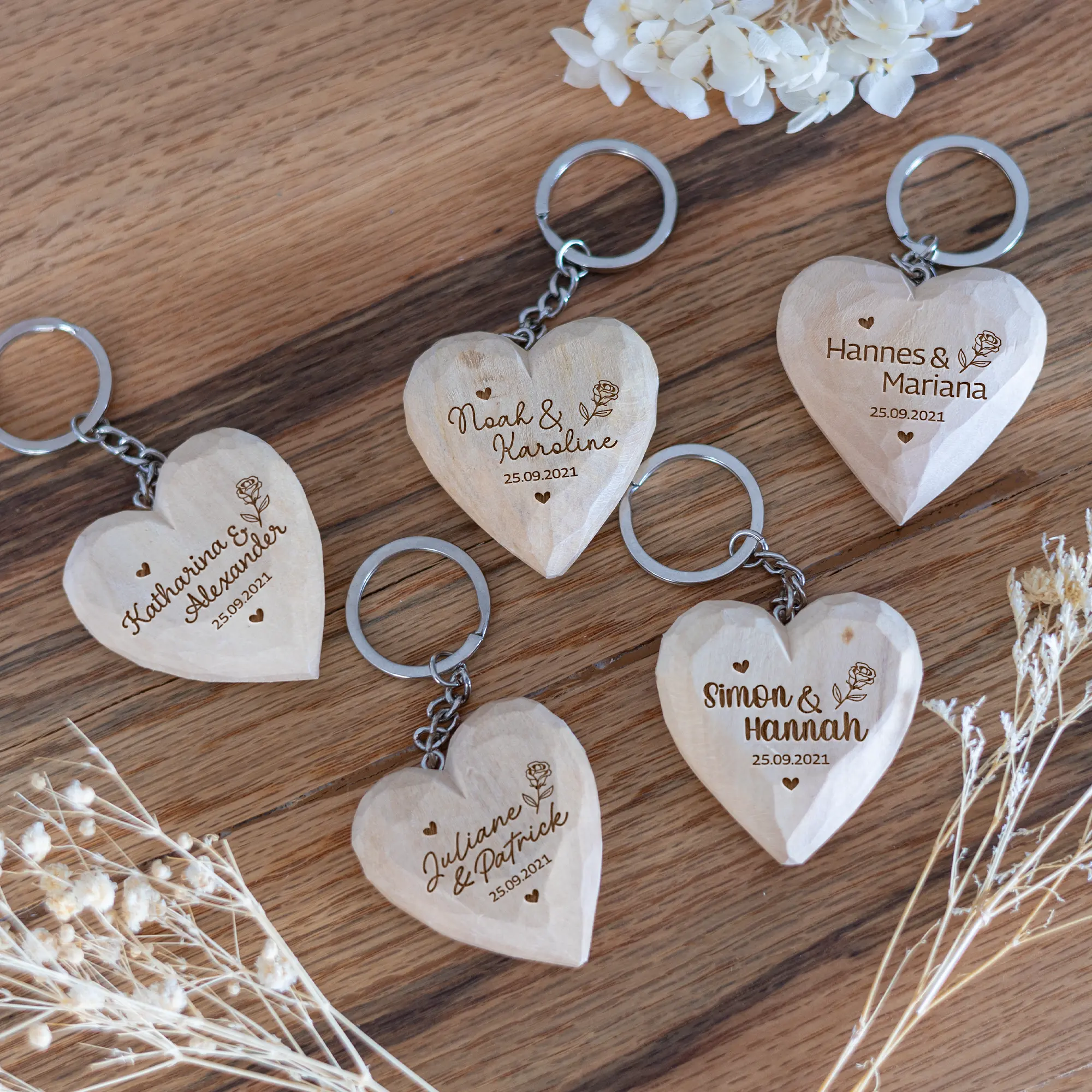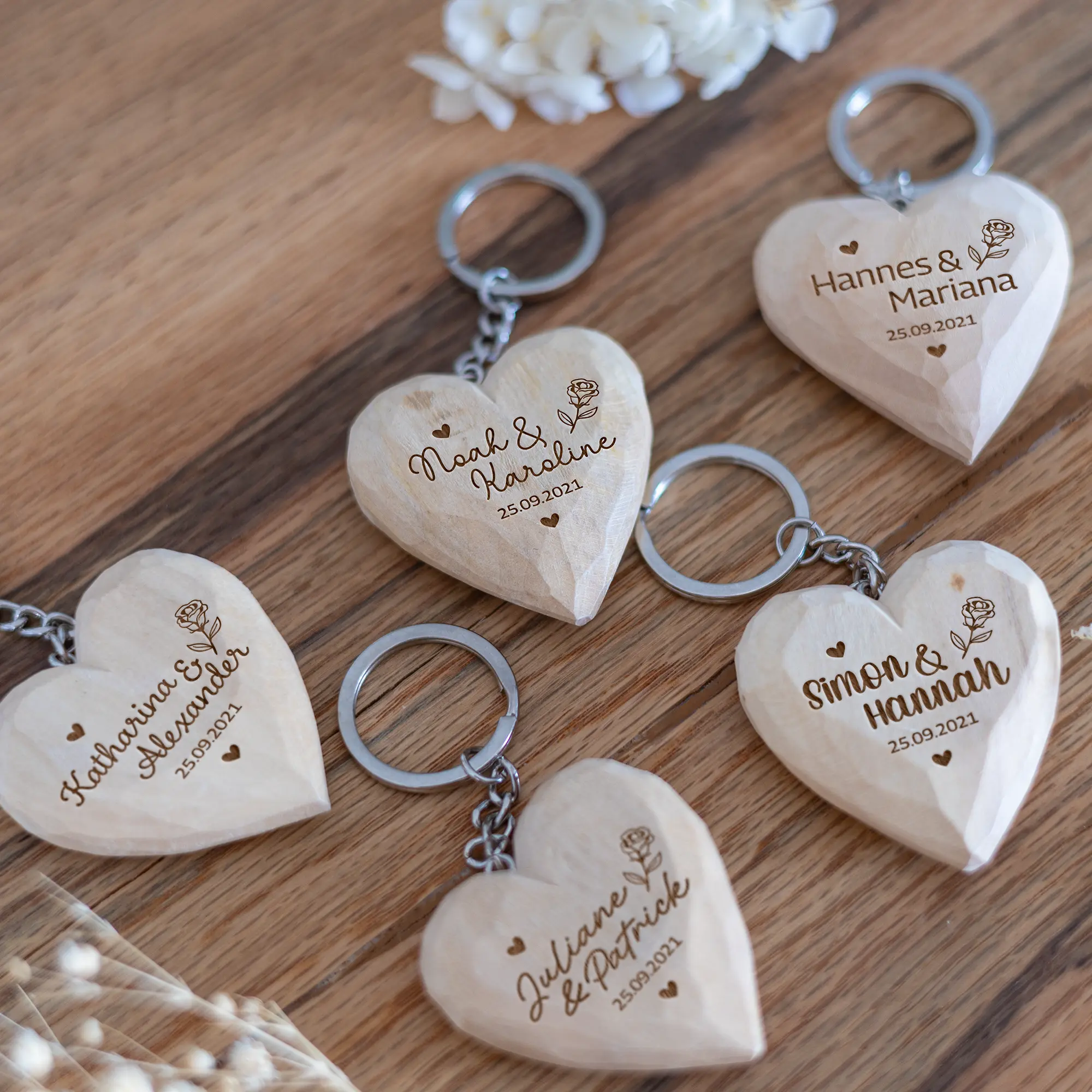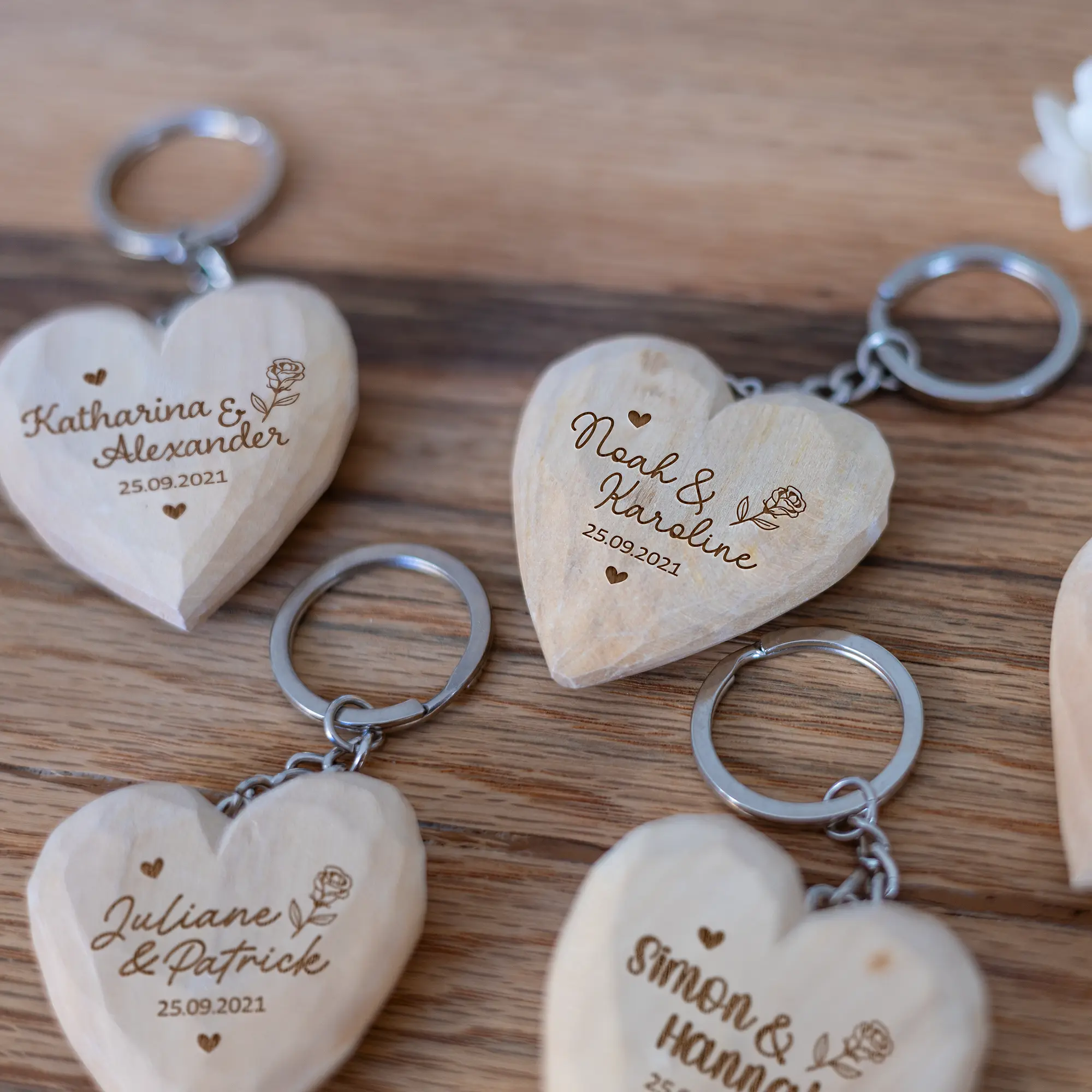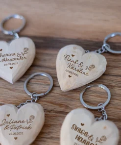 Entdeckt unsere romantischen, personalisierten Schlüsselanhänger in handgeschnitzter Herzform – das perfekte Geschenk für eure Liebsten! Jeder Schlüsselanhänger aus hochwertigem Lindenholz wird mit euren Namen und einem besonderen Datum, wie eurem Jahrestag, Hochzeitstag oder anderen Wunschdaten, individuell graviert. Verziert wird die persönliche Gravur von kleinen Herzen und einer Rose. So wird dieser rustikale Herzanhänger zu einem einzigartigen Symbol eurer Liebe, den Ihr immer bei euch tragen könnt. Der Herzanhänger ist ideal als liebevolles Geschenk zum Valentinstag, für euren Jahrestag, zur Verlobung oder einfach als romantische Geste, die immer im Herzen bleibt. Verschenkt eine persönliche Liebesbotschaft, die eure Liebsten stets begleiten wird!