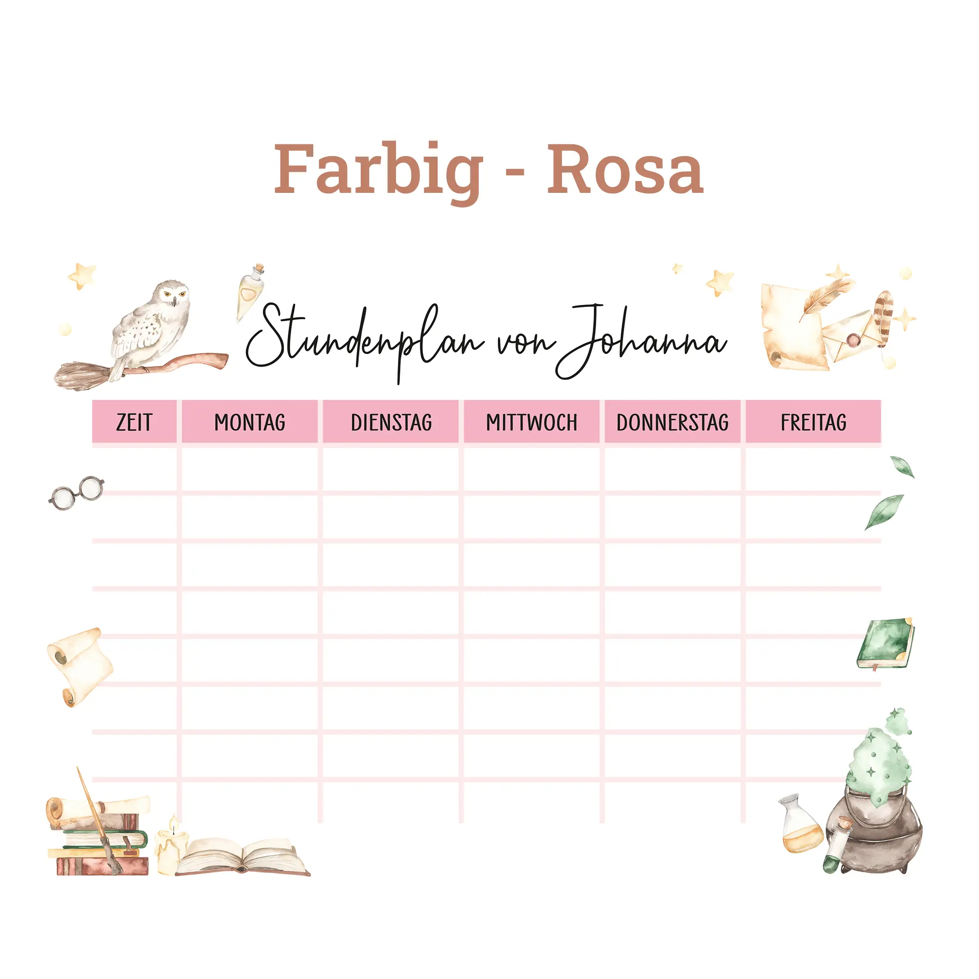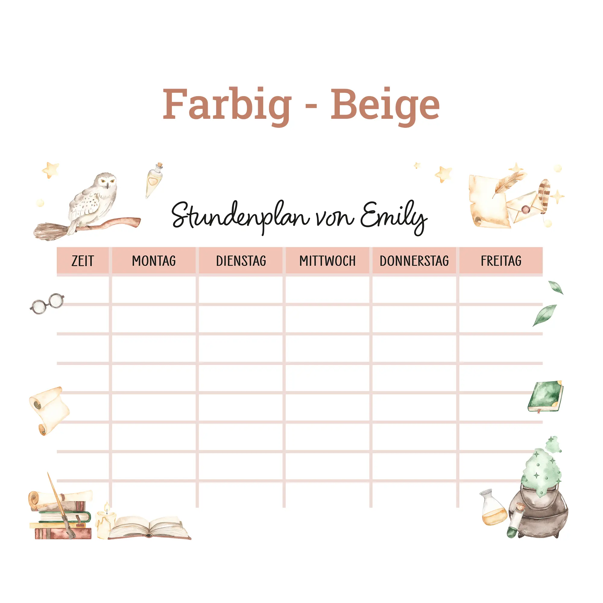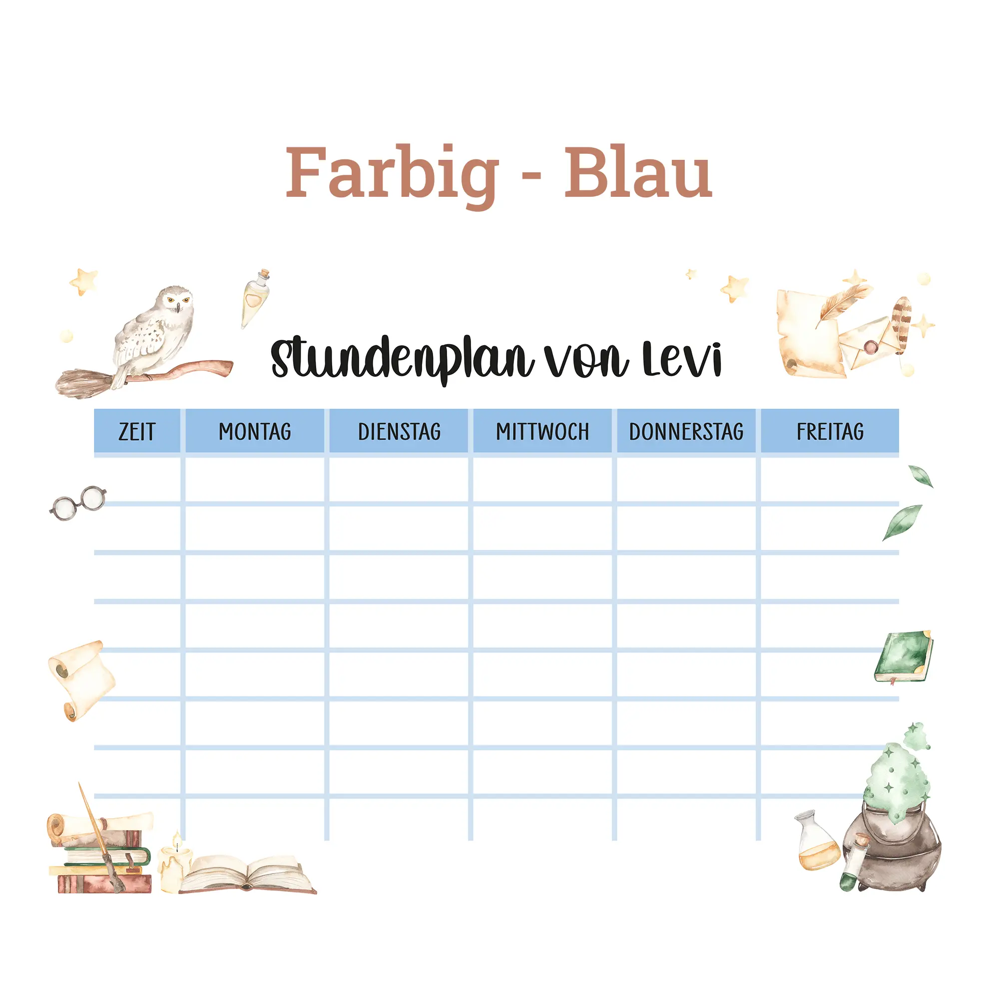 Durch die Vielzahl an Gestaltungsmöglichkeiten – ob bei Schriftart, Farben oder der Namensgestaltung – könnt ihr den Stundenplan ganz individuell anpassen. In Kombination mit den verschiedenen magischen Motiven wie einer Eule, Zaubertränke, fliegenden Besen und mehr entsteht ein einzigartiger Rahmen für jedes Kind. Wer mehrere Stundenpläne bestellt, kann für jedes Kind ein eigenes Design wählen – ganz persönlich und unverwechselbar. Zusätzlich liefern wir einen stabilen Aufsteller aus robustem Buchenholz mit, der dem Stundenplan einen sicheren Stand auf Schränken oder Kommoden verleiht. Auch hier gilt: Alles, was ihr aufschreibt, lässt sich dank der Glasoberfläche ganz einfach wieder entfernen – für eine lange und flexible Nutzung. Ein ideales Einschulungsgeschenk – für Jungen wie Mädchen gleichermaßen!