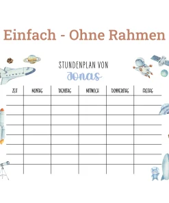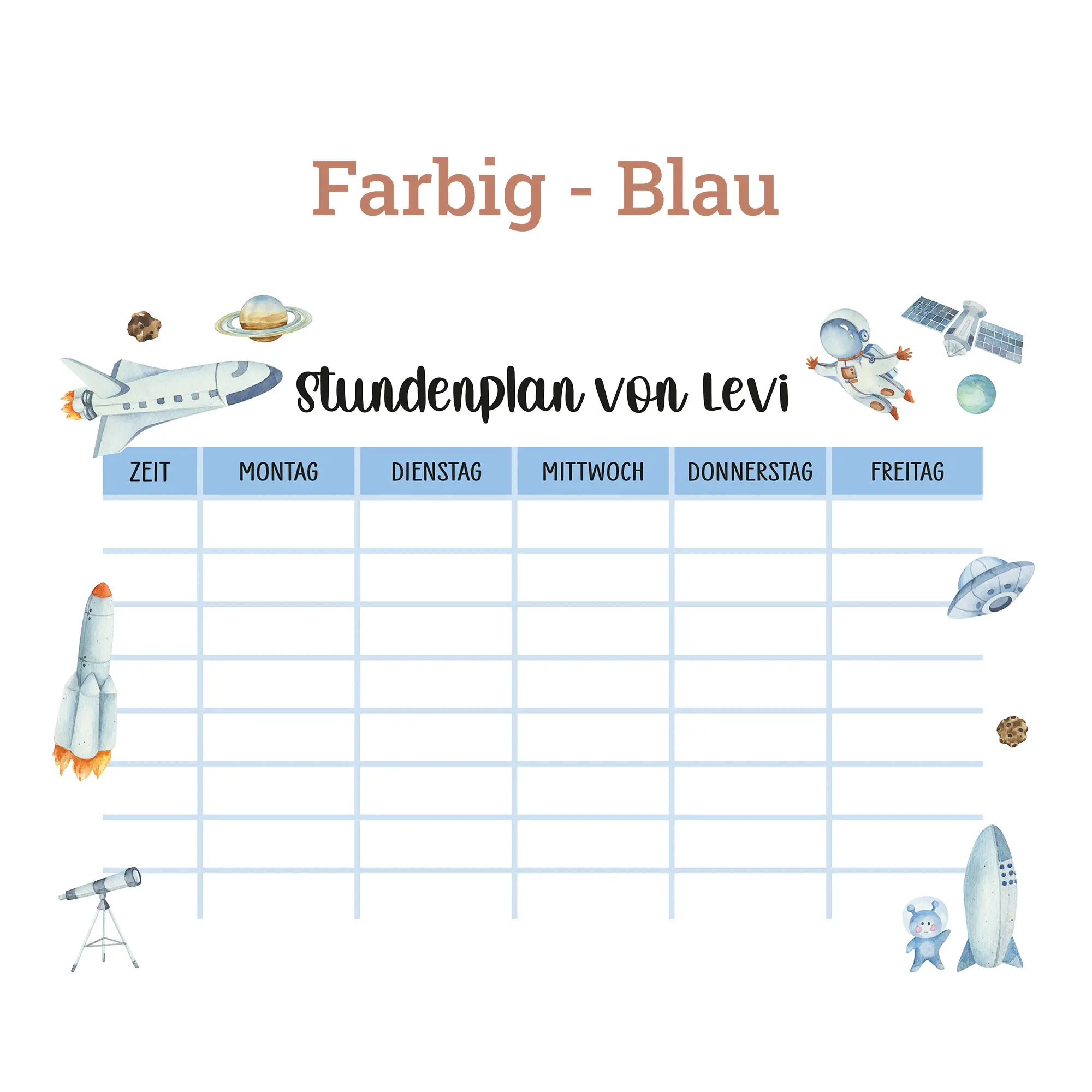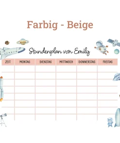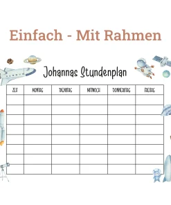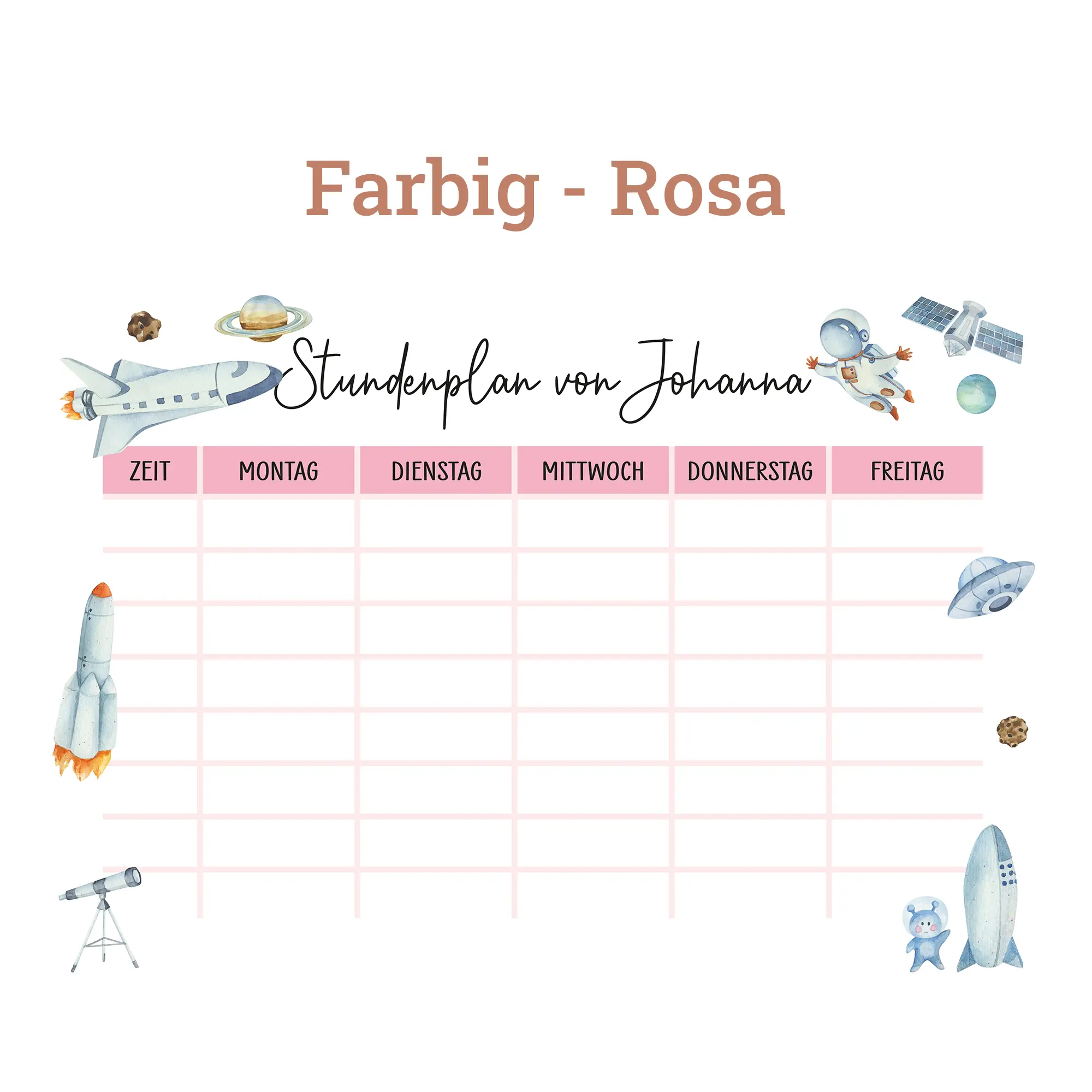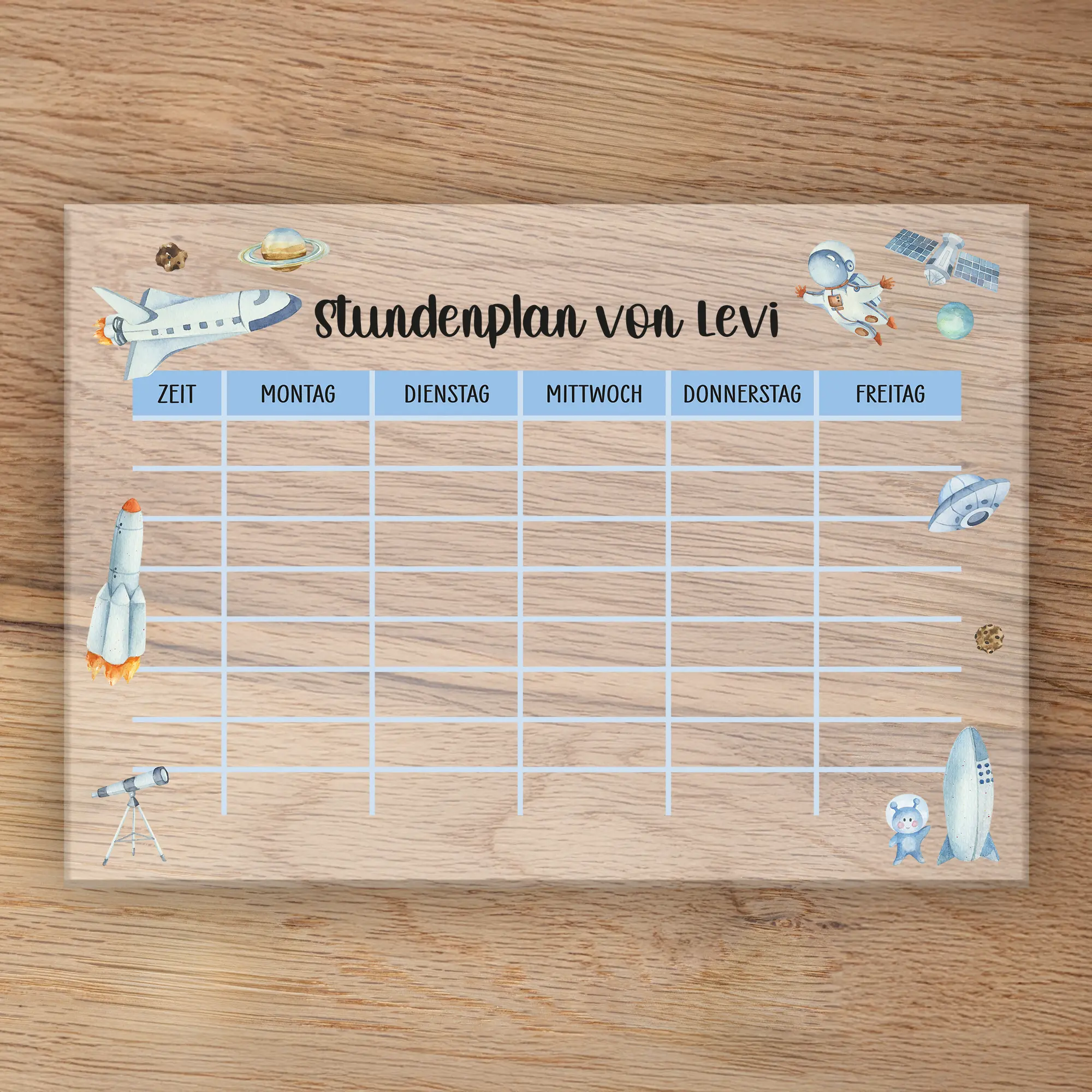 Personalisierter Stundenplan aus Acrylglas mit Weltraum-Motive für Mädchen und Jungen