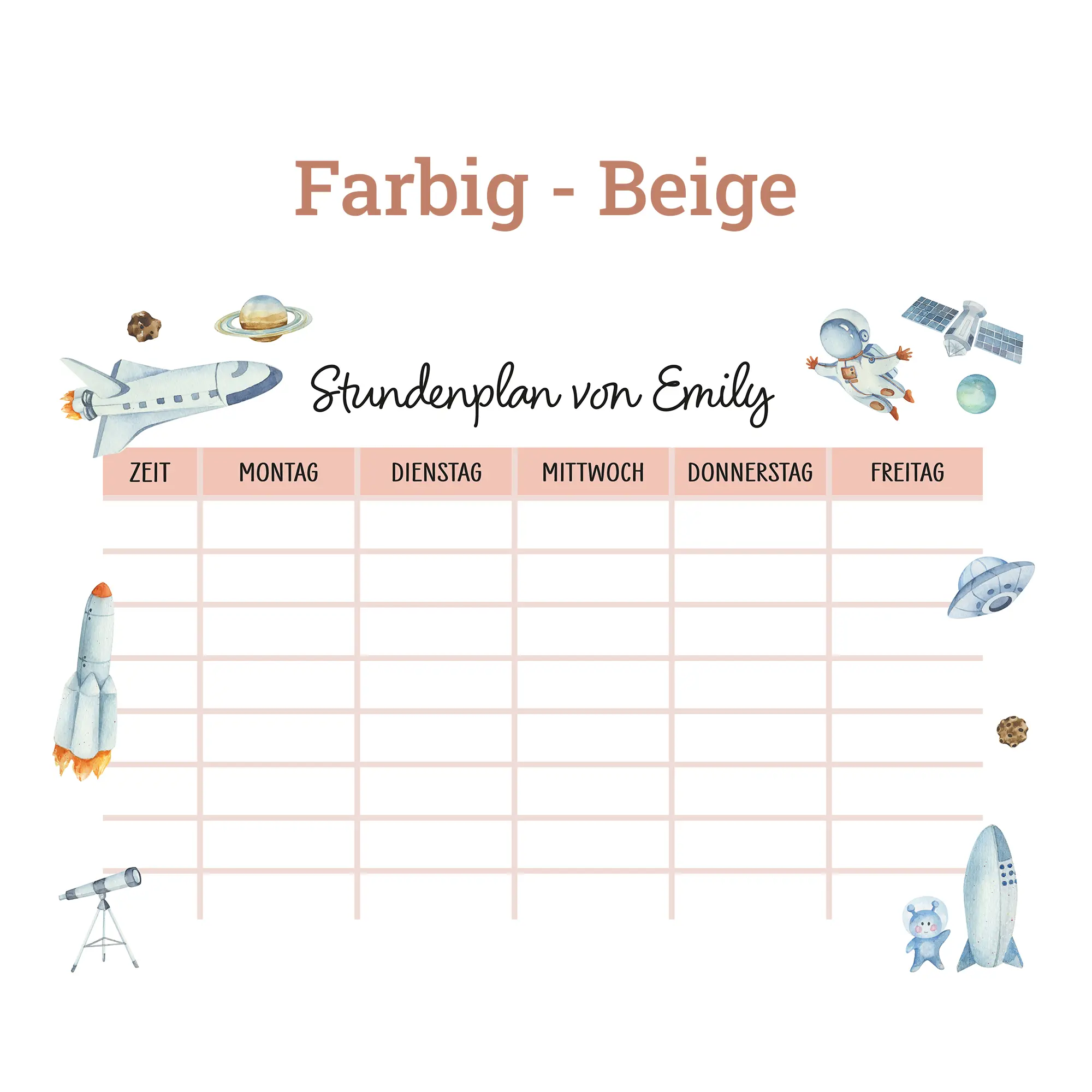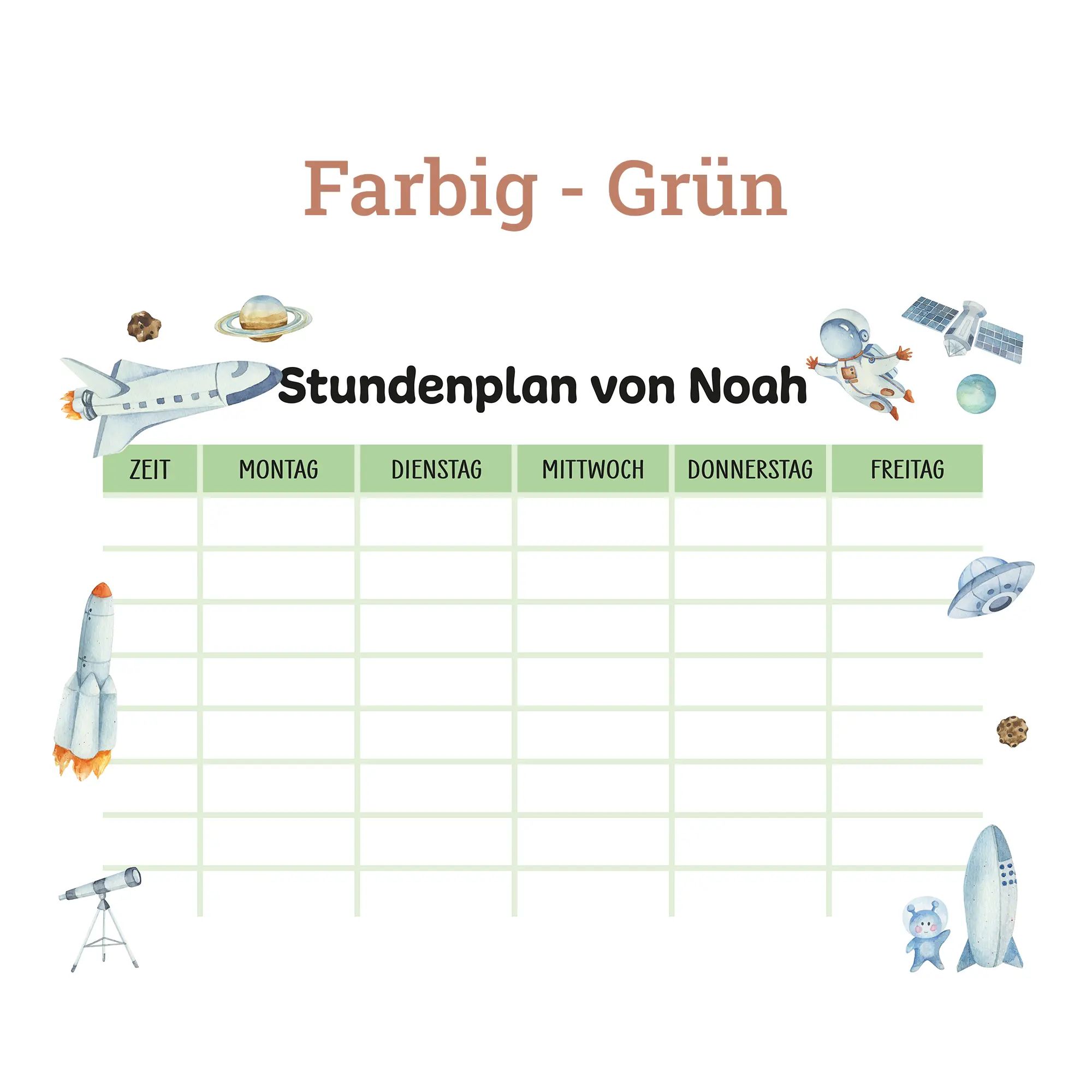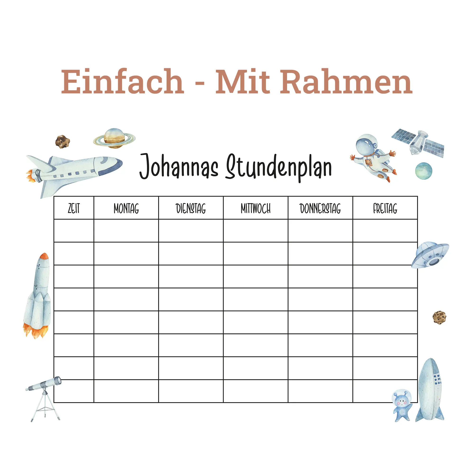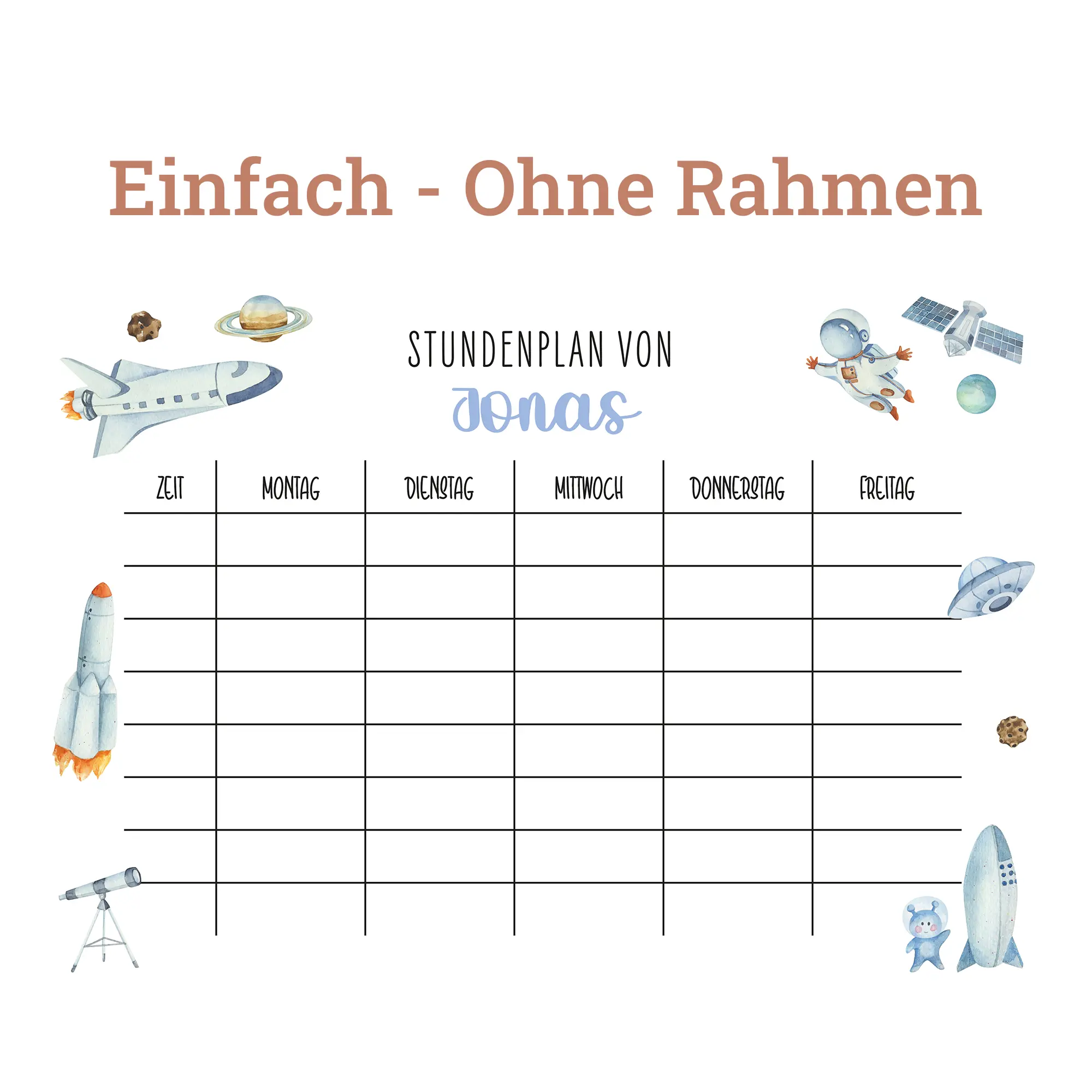 Personalisierter Stundenplan aus Acrylglas mit Weltraum-Motive für Mädchen und Jungen