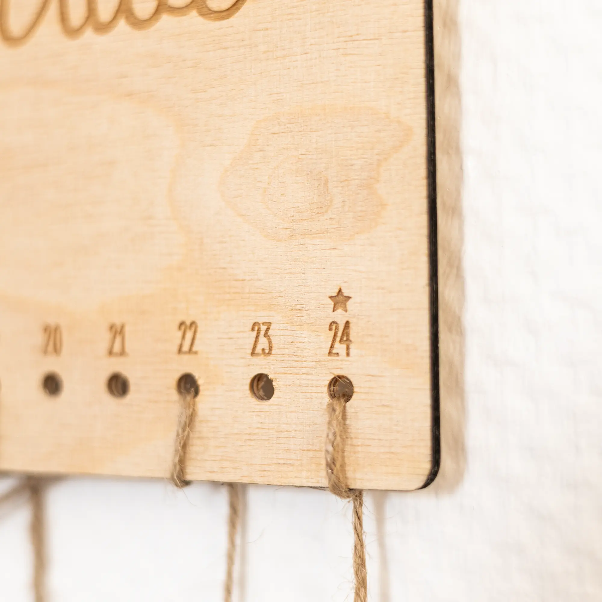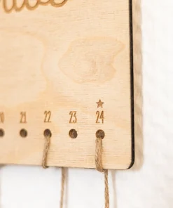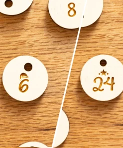 Zusätzlich könnt ihr für den Weihnachtskalender aus den Holzarten Birke und Buche wählen. Zu Hause könnt ihr ihn mit Säckchen* oder anderen Sachen ausgestattet, welche ihr mit einem Faden oder kleinen Seilen an den vorgebohrten Löchern des Holzkalenders anbringen könnt. Für eure Säckchen habt ihr zudem noch die Möglichkeit, 24 zum Weihnachtskalender passende Nummernschilder auszuwählen, welche ihr perfekt an die Säckchen und Überraschungen anbringen könnt.