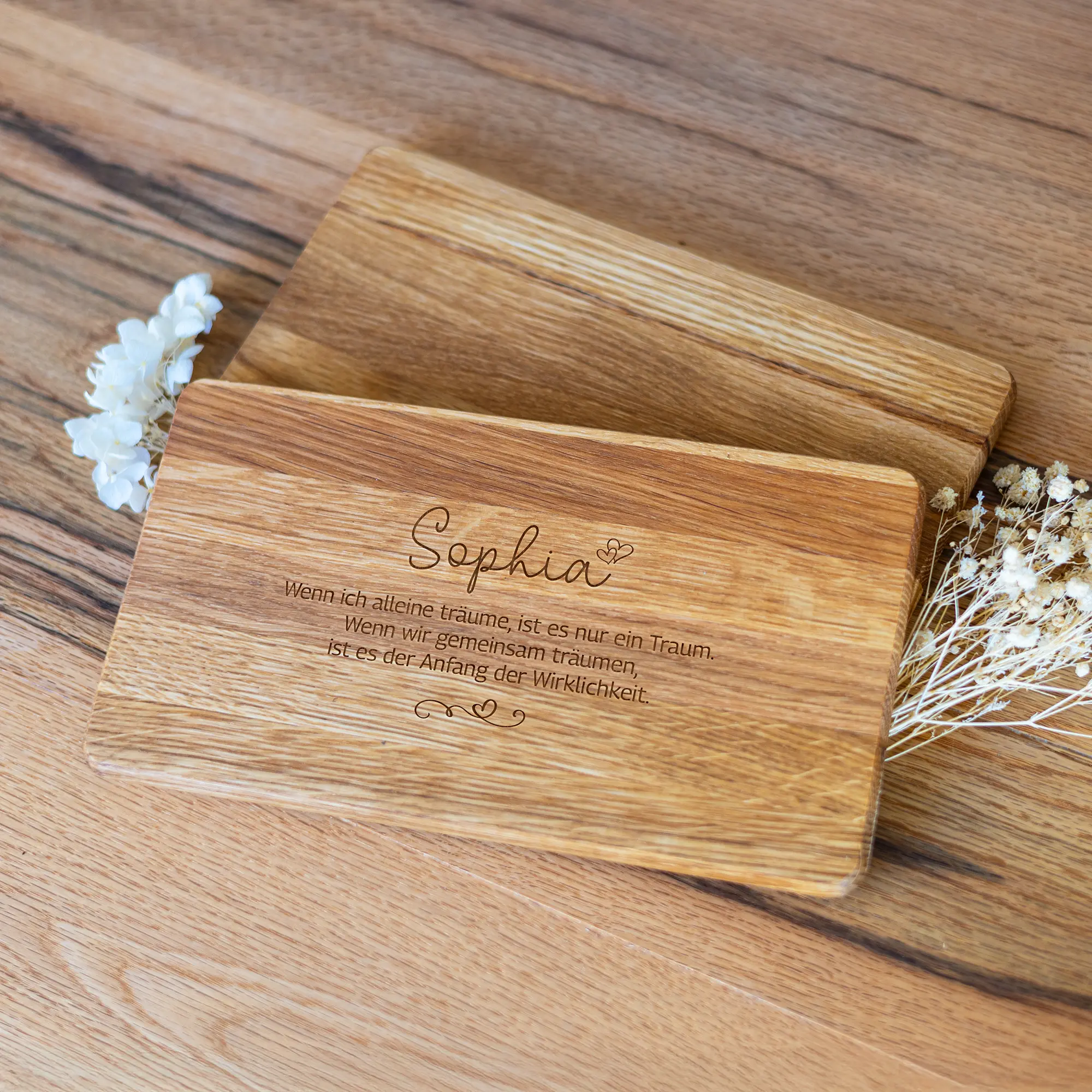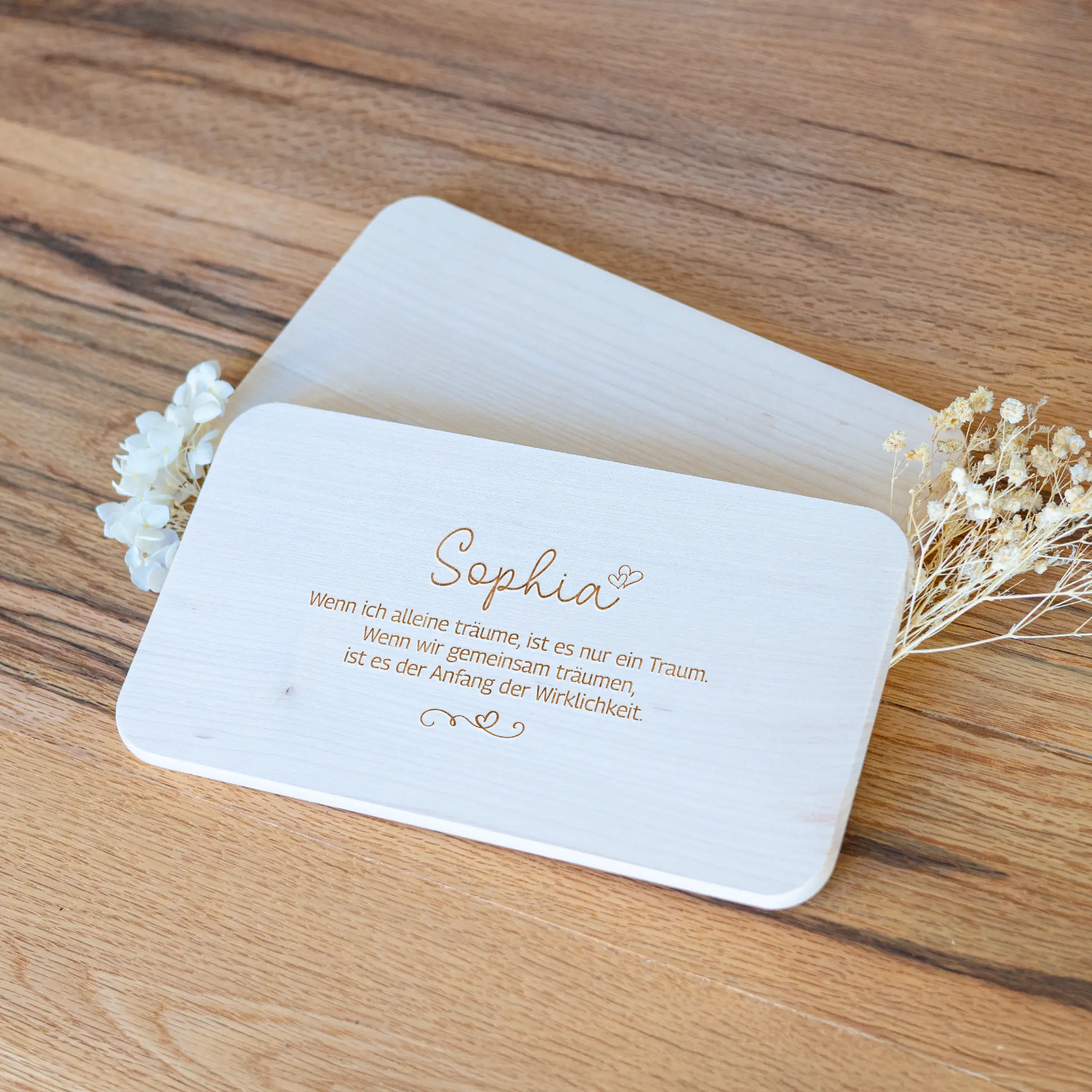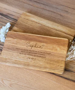 Verschenkt eure Liebesbotschaften auf eine ganz besondere Weise. Auf unserem personalisierten Frühstücksbrett könnt Ihr eure persönlichen Liebesbotschaften zusammen mit dem Namen eures Geliebten oder eurer Geliebten per Lasergravur verewigen lassen. Zusätzlich könnt Ihr aus 17 unterschiedlichen Schriftarten für den Namen wählen. Das Frühstücksbrett eignet sich perfekt als Geschenk an eure Liebsten am Valentinstag, Hochzeitstag, Jahrestag oder als besondere Überraschung zu jedem Zeitpunkt.