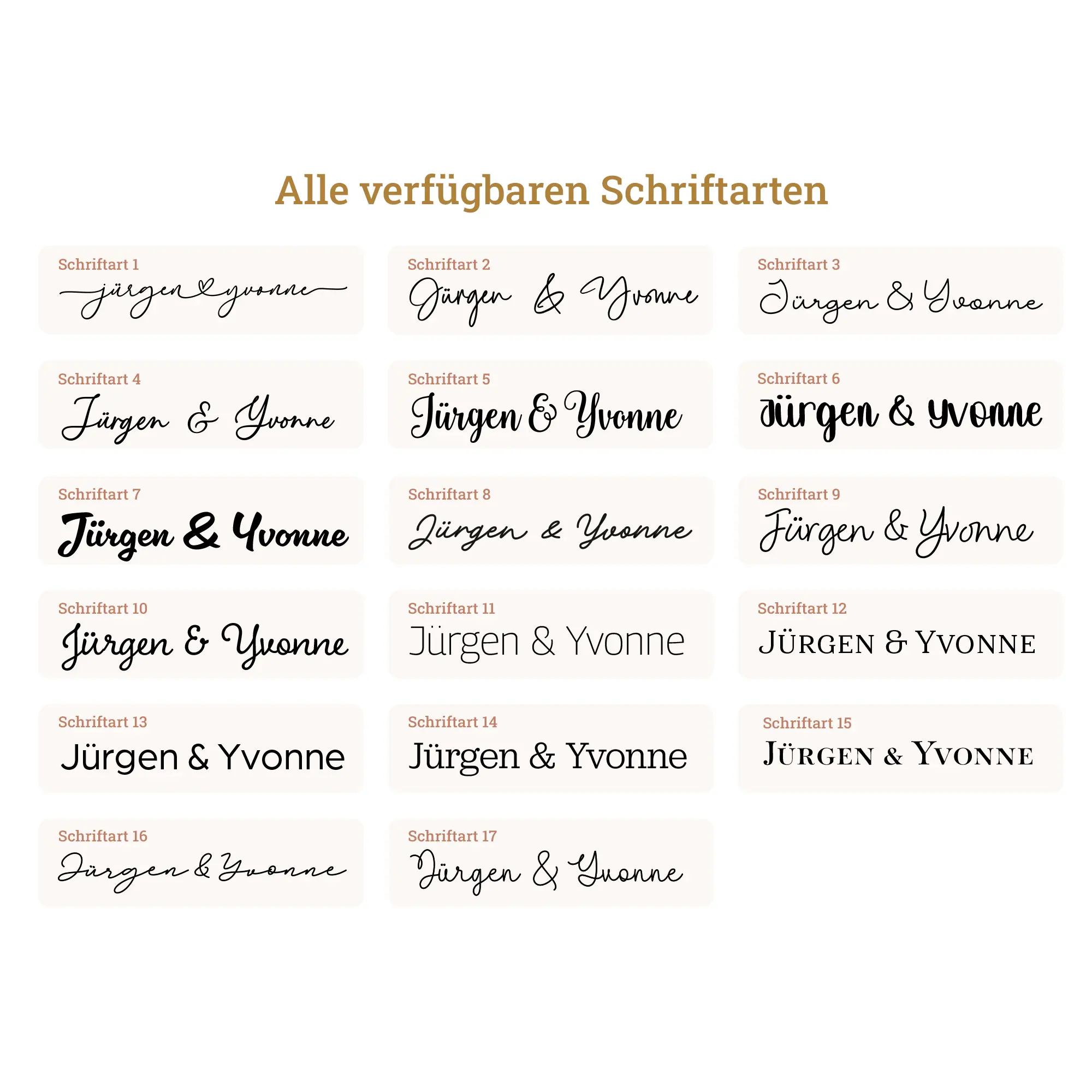 Dieses besondere Herz ist mit Namen, Datum oder einem besonderen Spruch personalisiert. Es ist das ideale Geschenk für bedeutsame Anlässe wie Hochzeiten, Jahrestage, dem Valentinstag und mehr. Ihr könnt besondere Momente mit eurem Partner, eurer Partnerin oder eines befreundeten Pärchens mit einem Spruch und dem Datum des Anlasses eingravieren lassen.