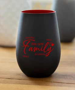 Ein muss für jede Familie. Unser personalisiertes Kerzenglas „We are Family“ ist ein stilvolles Element für den Familienhaushalt. Der Schriftzug „We are Family“ ist zusammen mit den Namen der Familienmitglieder in das Glas gelasert. Das Windlicht ist in mehreren eleganten Farben und Farbkombinationen zu erhalten, während durch durch das präzise gelaserte Design das Kerzenlicht scheint. Ob Abends auf der Terrasse, im Wohnzimmer oder vor der Haustüre, das Windlicht strahlt sofort Gemütlichkeit aus. Das personalisierte Windlicht eignet sich auch hervorragend als Geschenk für befreundete Familien.