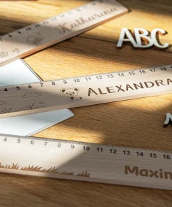 Wähle aus sieben verschiedenen Motiven und vierzehn verschiedenen Schriftarten oder lasse bei besonderen Wünschen euer personalisiertes Lineal von uns umgestalten. Der warme Holzton und die feine Gravur verleihendem Lineal eine rustikale und zugleich schöne Note. Jedes Lineal wird in sorgfältiger Handarbeit in Deutschland hergestellt und von uns weiterverarbeitet, wodurch jedes Stück zu einem Unikat wird. Die individuelle Maserung des Holzes und die präzise Lasergravur machen die Lineal zu einem besonderen Blickfang in jedem Mäppchen.