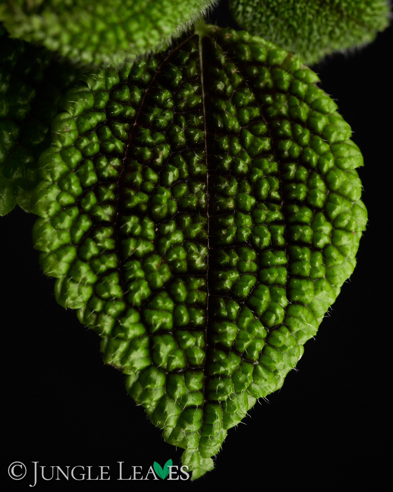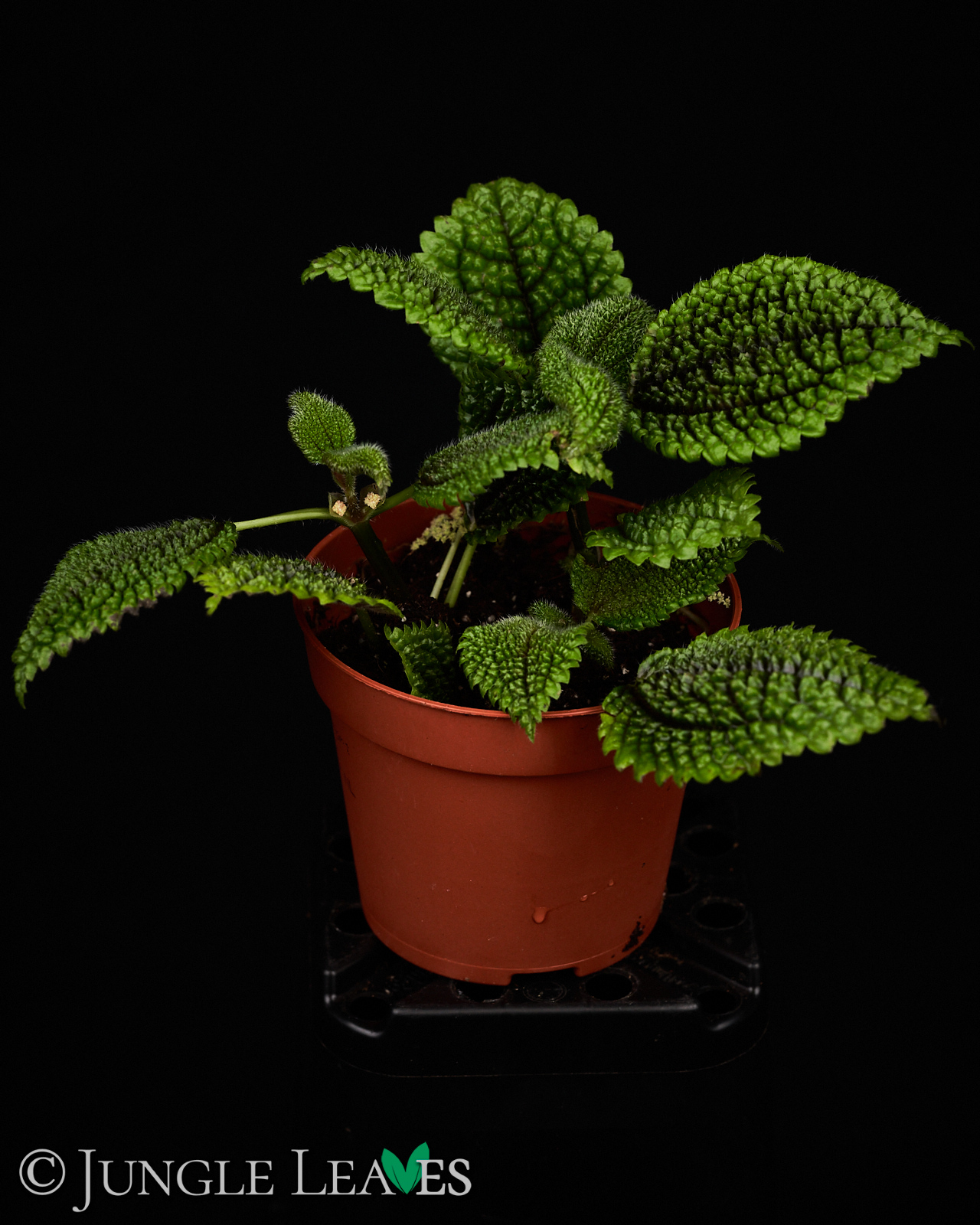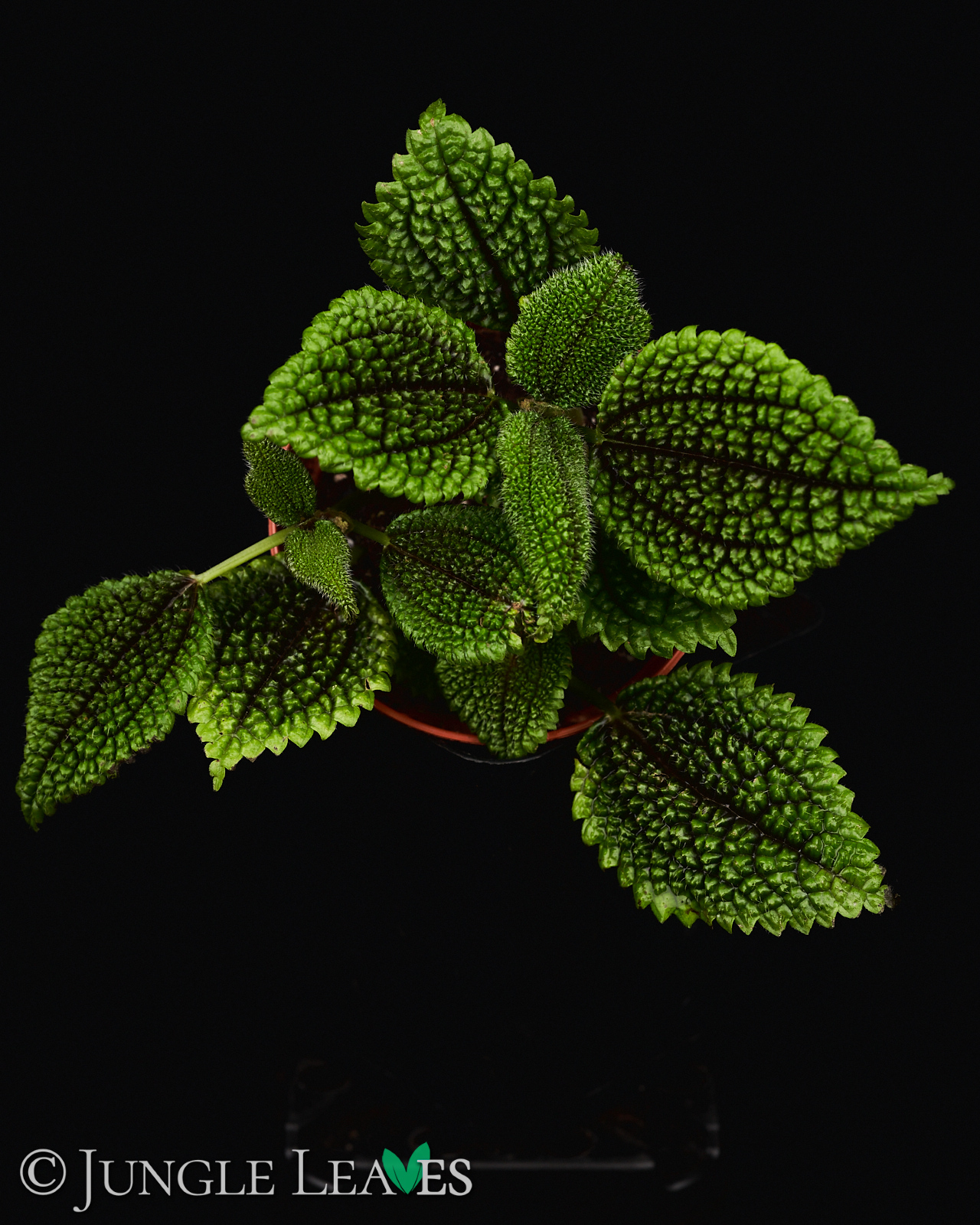 Egal wie der Name ist, sie ist einfach zu pflegen, sowohl im Terrarium als auch im Zimmer. Sie wird etwa 30cm hoch und hat am Rand gezahnte Blätter. Besonders auffällig ist die Struktur der Blätter. Auf jedem Blatt sind zahlreiche kleine, spitze Erhebungen („Bullae) auf deren Spitze jeweils ein Haar steht. Zwischen diesen Bullae ist das Blatt eingesunken und rötlich gefärbt. Je nachdem wie viel Licht sie bekommt kann diese rote Färbung auch größere Teile des Blattes betreffen.