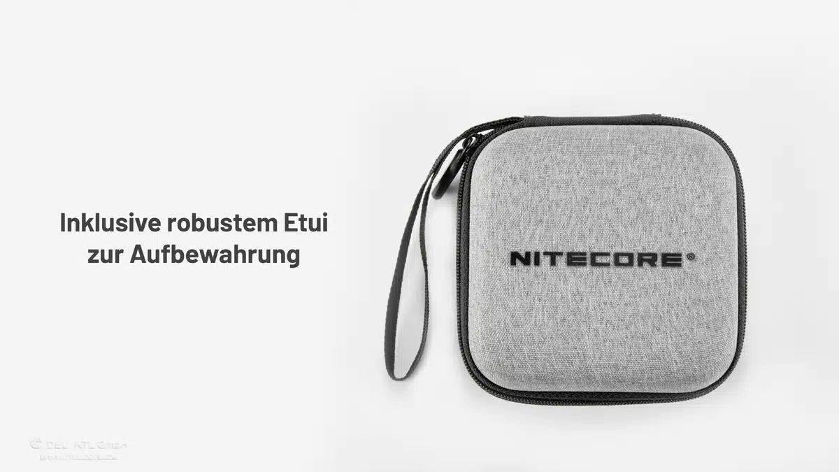 Lieferumfang: Nitecore HC65 UHE, Kopfband, Nitecore Li-Ion Akku 18650 mit 4000mAh (NL1840HP), USB-Ladekabel, Tasche
