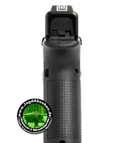 Der Schlitten der Pistole Glock 19 Gen5 MOS wurde für die Aufnahme optional erhältlicher Adapterplatten vorbereitet, die die Montage von optischem Zubehör (M.O.S.-System = Modular-Optic-System) erlauben. So bieten wir z. B. für diese Waffe das aus unserer