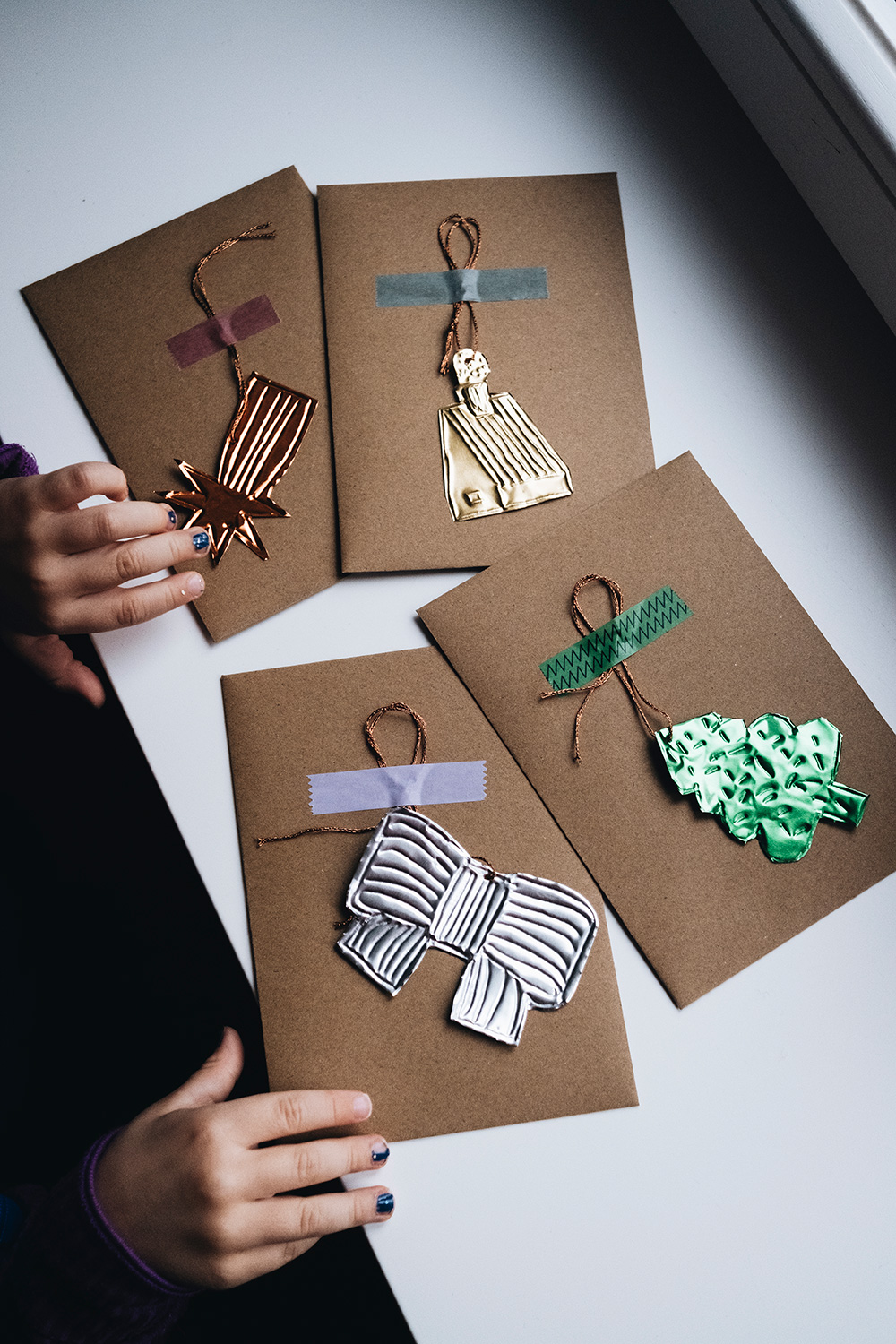 Ob glänzende Hängerchen für Zweige in der Vase, festliche Girlanden oder strahlende Deko für Grußkarten: Häuser, Schleifchen, Sternchen & Co. sind mit den Vorlagen schnell auf die zarte Metallfolie übertragen.