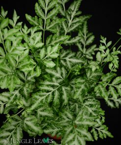 Ausgewachsene Exemplare haben wunderschöne, einfach gefiederte Wedel mit sehr schmalen Segmenten („ensiformis“ bedeutet „schwertförmig“). Kleinere Pflanzen haben noch deutlich breitere Blätter. Bei der Zuchtform ‚Evergemiensis‘ ist zusätzlich noch die Oberseite weiß gezeichnet. Ein ausgewachsenen Exemplar von Pteris ensiformis ‚Evergemiensis‘ ist ein absoluter Blickfang! Sehr hübsch und einfach zu pflegen.