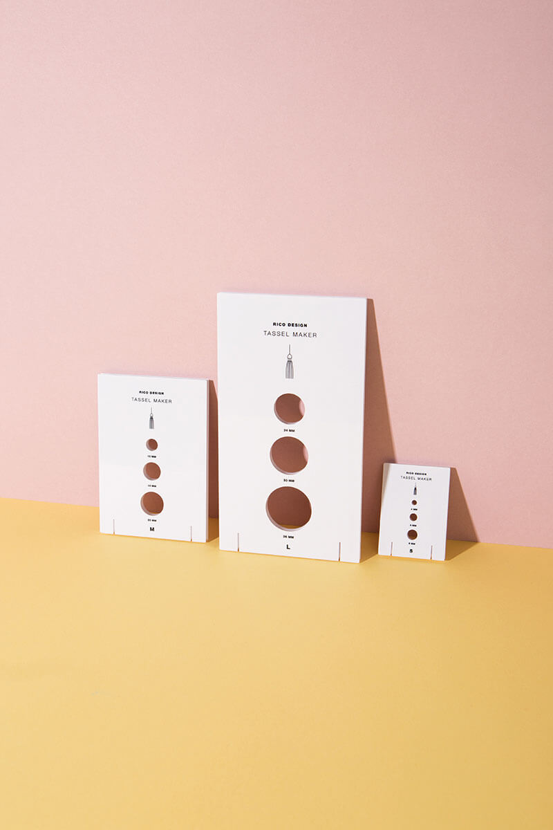 Im Set enthalten sind 3 Tassel Maker aus Acryl – Maße: 5 x 7 cm (S), 9 x 13 cm (M), 11 x 20 cm (L)