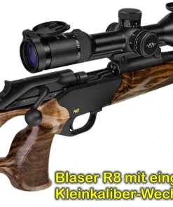Jederzeit und überall die vertraute Büchse durch den Schnellumbau auf das R8 KLEINKALIBER-WECHSELSYSTEM führen zu können, schafft beste Voraussetzungen auf der Jagd oder auf dem Schießstand. Für Blaser ist es deshalb selbstverständlich, Jägern den Wechsel von Lauf oder Schaft so einfach wie möglich zu machen. Mit dem gewohnten Abzugsgewicht und einer vertrauten Handhabung, kann sich der Schütze dann gänzlich auf den Schuss konzentrieren. Mittels diesem intuitiven Wechselsystem ermöglicht Blaser uns Jägern, auch so richtig ausgiebig zu trainieren. Den Einen oder Anderen schmerzt es schon, mit €4,50 teuren Premium-Patronen die Schießfertigkeiten, schnell in Anschlag gehen mit Schussabgabe und die Trefferlage-Präzision zu verbessern. Mit einem z. B. .22 lfb-Wechselsystem-Set denkt man überhaupt nicht mehr über das Thema Kosten nach bei Schusspreisen von wenigen Cent! Die Umrüstung ist (wenn man sich mal reichrechnen will :-)!) nach 300-500 Schuss bezahlt. Und dann üben, übern, üben nach Herzenslaune! Ein anderer Vorteil: Die Weitschuss-Simulation. In puncto Geschossabfall entspricht das Schießen mit .22 lr/lfb auf 100m einer Distanz von ca. 300m mit einer .308 Winchester (plus-minus!). Somit können wir damit gut ein Longrange-Training durchführen, ohne lange Schießbahnen mieten zu müssen.