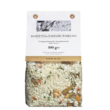 Risotto Mischung aus Carnaroli-Reis, Steinpilzen (6%) sowie Gemüse und Kräutern.