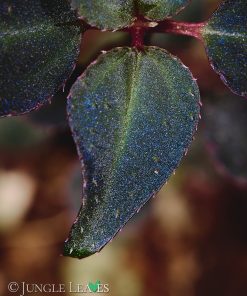 Diese besonders klein bleibende Sarcopyramis stammt vermutlich von Sumatra (Indonesien). Sie wächst in sehr schattigen, feuchten Habitaten im tiefen Unterwuchs des Regenwaldes. Sie wird etwa 5 bis 10cm hoch. Sie verzweigt sich nur wenig bis gar nicht und blüht meist ab einer Höhe von ca. 5cm. Besonders auffällig sind ihre stark blau irisierenden Blätter. Sie sind im richtigen Licht komplett glitzernd metallisch blau mit grün abgesetzten Adern und wenigen, kurzen pinken Haaren. Es handelt sich bei dieser Art nicht um Sarcopyramis parvifolia, diese hat rundliche und stärker behaarte Blätter.
