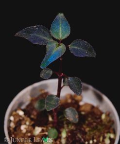 Alle anderen Teile der Pflanze (Stängel, Blattunterseiten) sind rot bis lila. Sehr spannend ist, dass diese Art ihre blaue Färbung auch bei recht starker Beleuchtung behält.