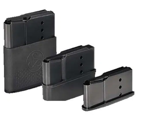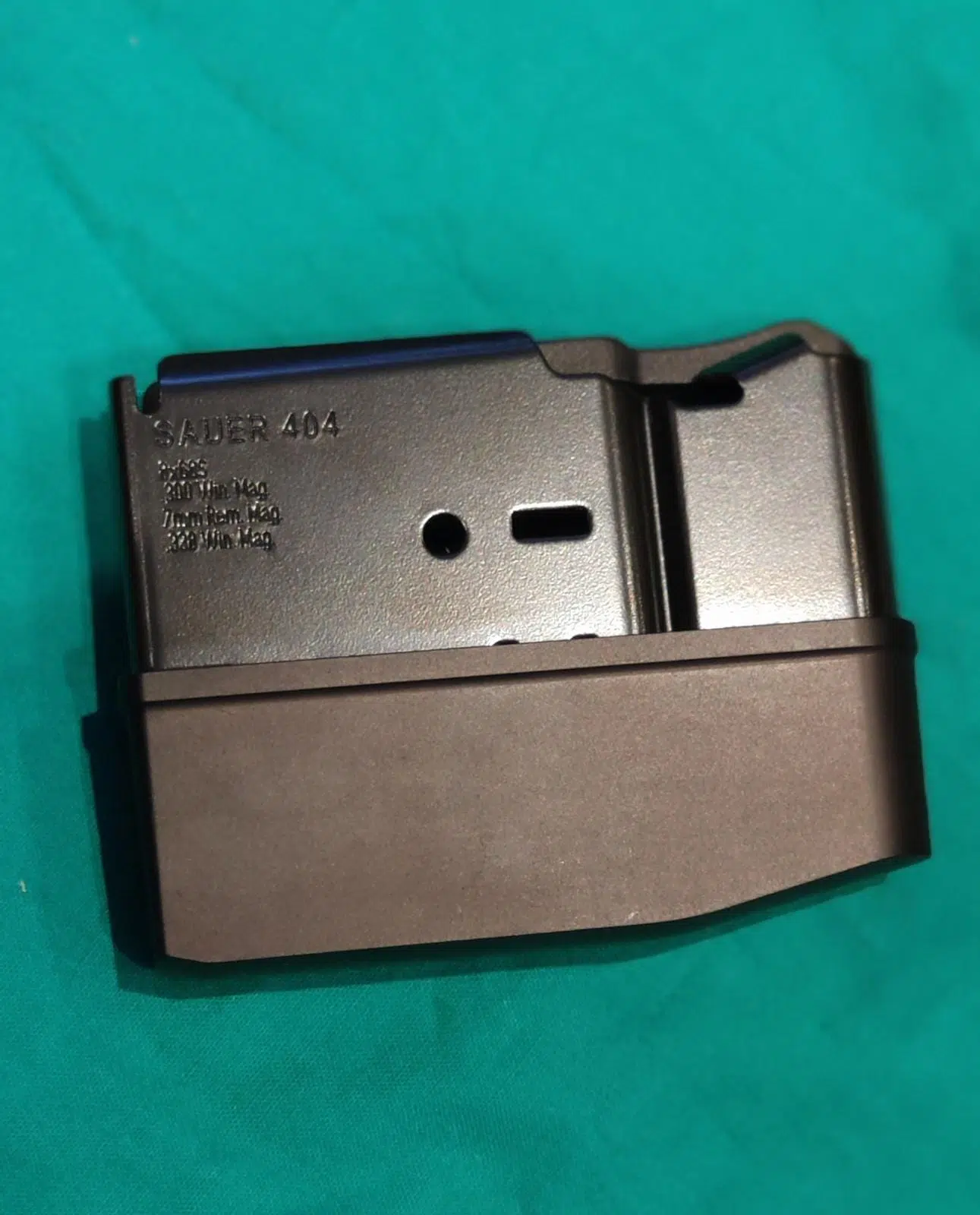 Es handelt sich bei dem Sauer 404 Synchro XT 5-Schuss MAGNUM Magazin um einen Stahlkorpus mit einer starpazierfähigen Kunststoffverlängerung in mattschwarzem Polymer. Seitlich gestanzt finden Sie die damit zugelassenen und somit passenden Munitionsarten 300 Winchester Magnum, 7mm Remminton Magnum und .338 Winchester Magnum.