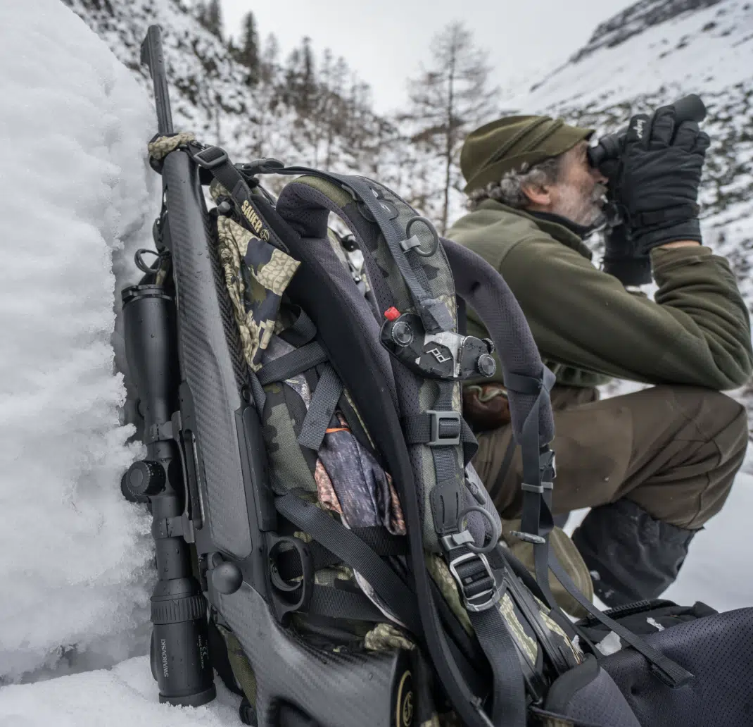 Der unglaublich leichte, aber dennoch robuste und ästhetische Carbonschaft der Handspanner Repetierbüchse Sauer 404 Synchro XTC macht seinen Job ohne Murren, sodass seine Griffigkeit bei Feuchtigkeit wie bei trockenem Wetter einem die nötige Sicherheit gibt für einen ruhigen Schuss, auch wenn es mal schnell gehen muss. Serienmäßig ist diese Waffe mit einen verstellbaren Schaftrücken ausgerüstet.