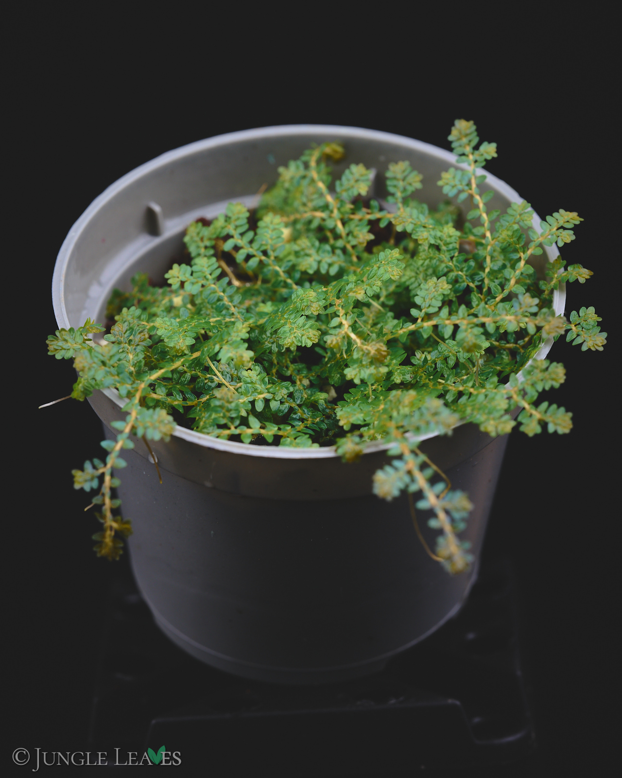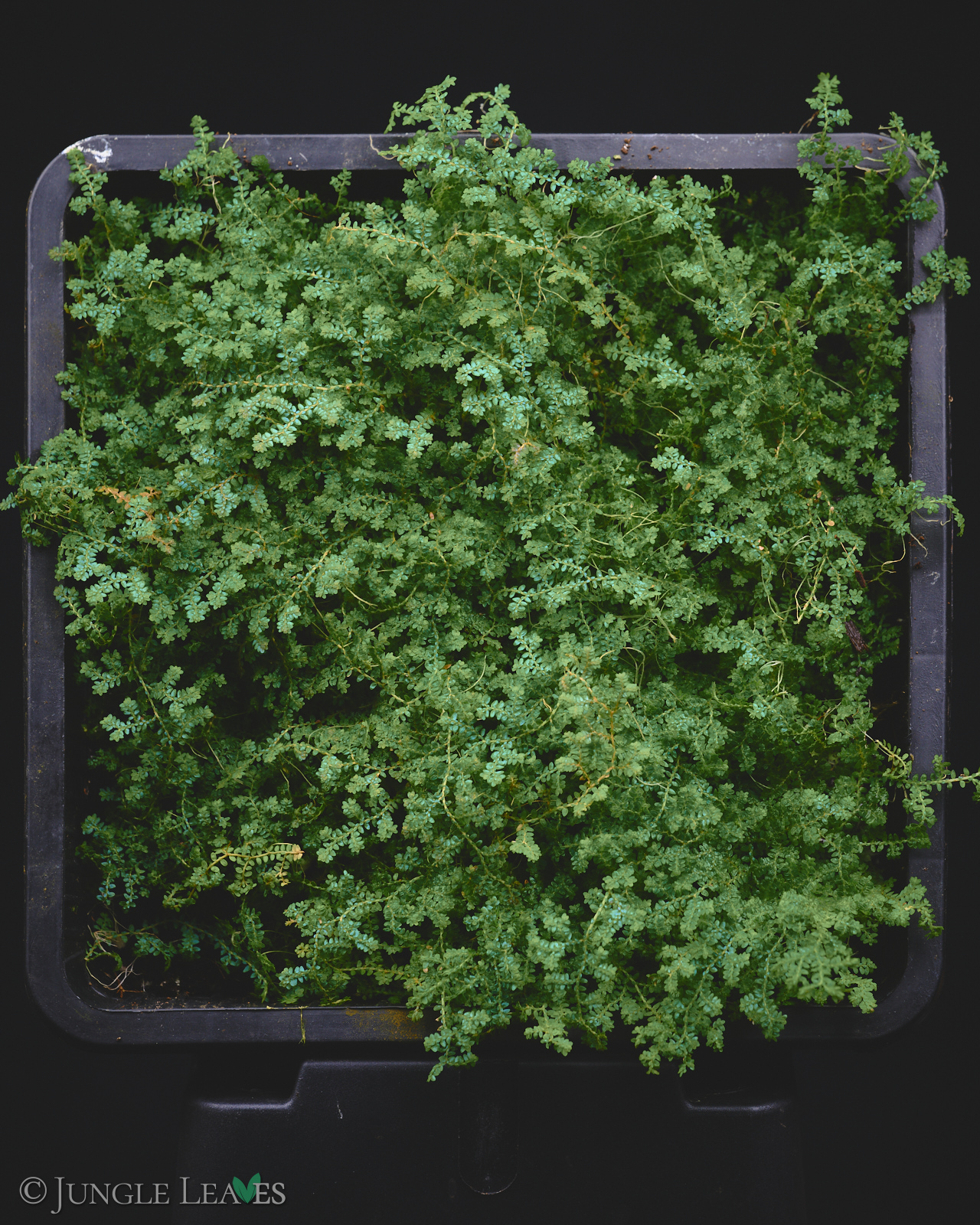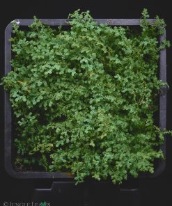 Selaginella sp. ‚Dwarf Blue Purple‘ stammt aus Ratchaburi, im Westen von Zentral-Thailand. Uns erinnert es am ehesten an eine Miniaturform von Selaginella uncinata. Es wächst als kompakte, anfänglich lockere, später dichte Matte und färbt sich bei wenig Licht irisierend metallisch blau, bei viel Licht metallisch lila! Auffällig sind die gelblichen Stämme und die Runden, nur ca. 1 mm kleinen Blättchen.