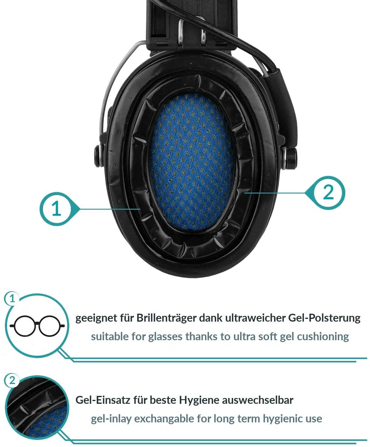 - waldgrüne Muscheln, extrem robust, mit wasserdichten Mikrofonen und 5 Jahren Herstellergarantie auf elektronische Bauteile. Ideal für Jäger und Sportschützen.