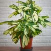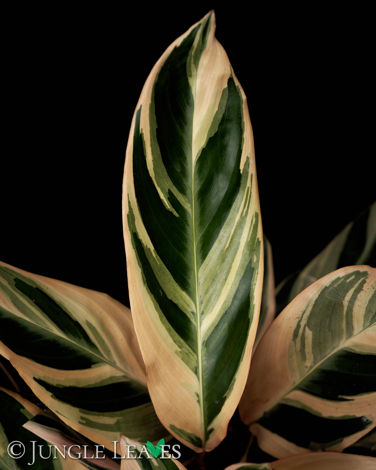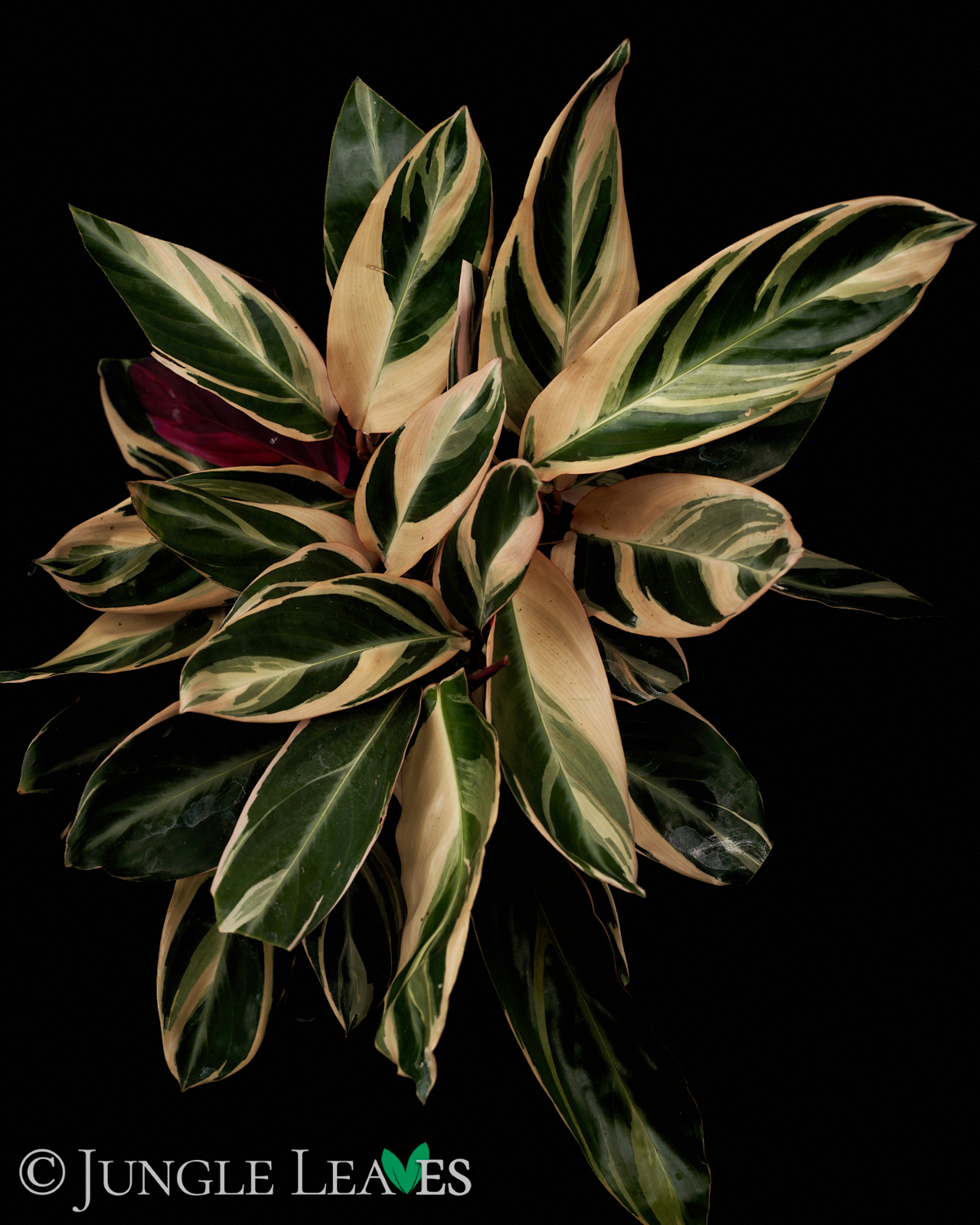 Die Zuchtform ‚Triostar‘ zeichnet sich durch ihre wunderschöne, cremefarbene Panaschierung aus. Große Teile der Blätter sind weiß, einige Streifen sind hellgrün, einige dunkelgrün. Frische Blätter haben oft noch eine leichte rosa Färbung auf den weißen Teilen.