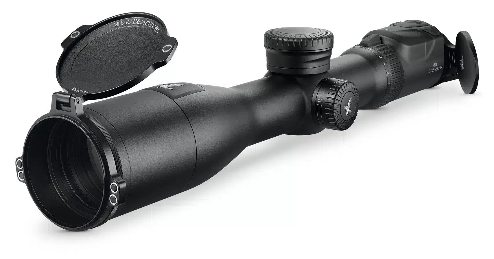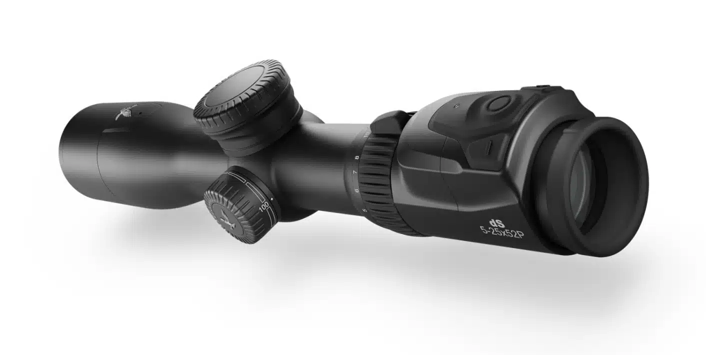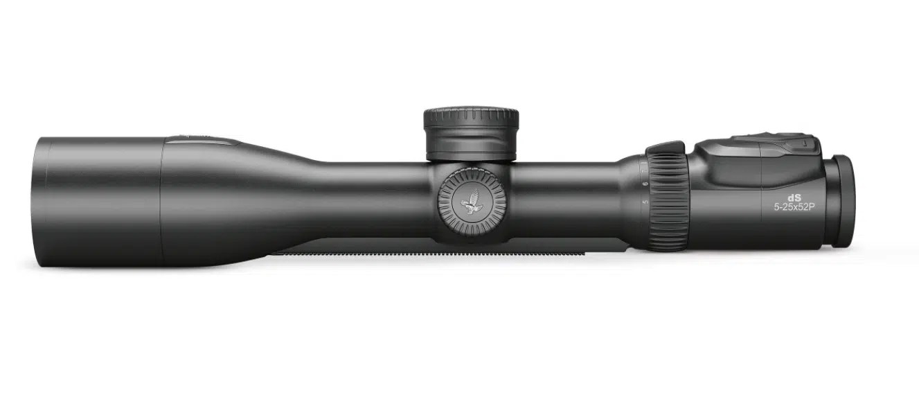 Das dS 5–25×52 P kommt in seiner zweiten Generation in einem schlankeren Design. Der erweiterte Abstand zwischen Cockpit und Vergrößerungsstellring macht die Bedienung des Stellringes im Anschlag noch einfacher