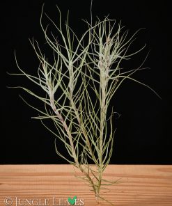 Diese Tillandsia kommt aus Ecuador und Peru. Sie hat weiche, schmale Blätter mit starker Beschuppung, was ihr ein mattweißes Aussehen verleiht. Sie ist sehr grazil und wächst als langer Trieb mir wenigen Blättern. Sie bildet mit der Zeit große Klumpen aus vielen dutzend Einzelpflanzen. Ihre Blüten sind auffällig blau bis lila.