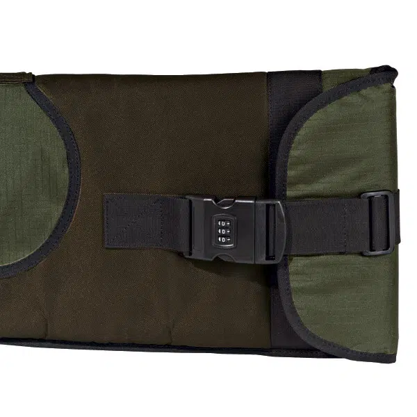 Plug & Play – gesetzeskonformes Futteral für Büchsen und Kurze Flinten. Unser modernes Futteral „Forest“ aus robustem 600D Nylon in schönen Grüntönen verfügt über ein integriertes Zahlenschloss am Deckel (3 stellig) sowie über dickes Innenfutter mit Microfleece. Weiterhin bietet es einen gepolsterten Tragegriff und einen längenverstellbaren Trageriemen. Fast lautlos zu öffnen, da kein Reißverschluss!
