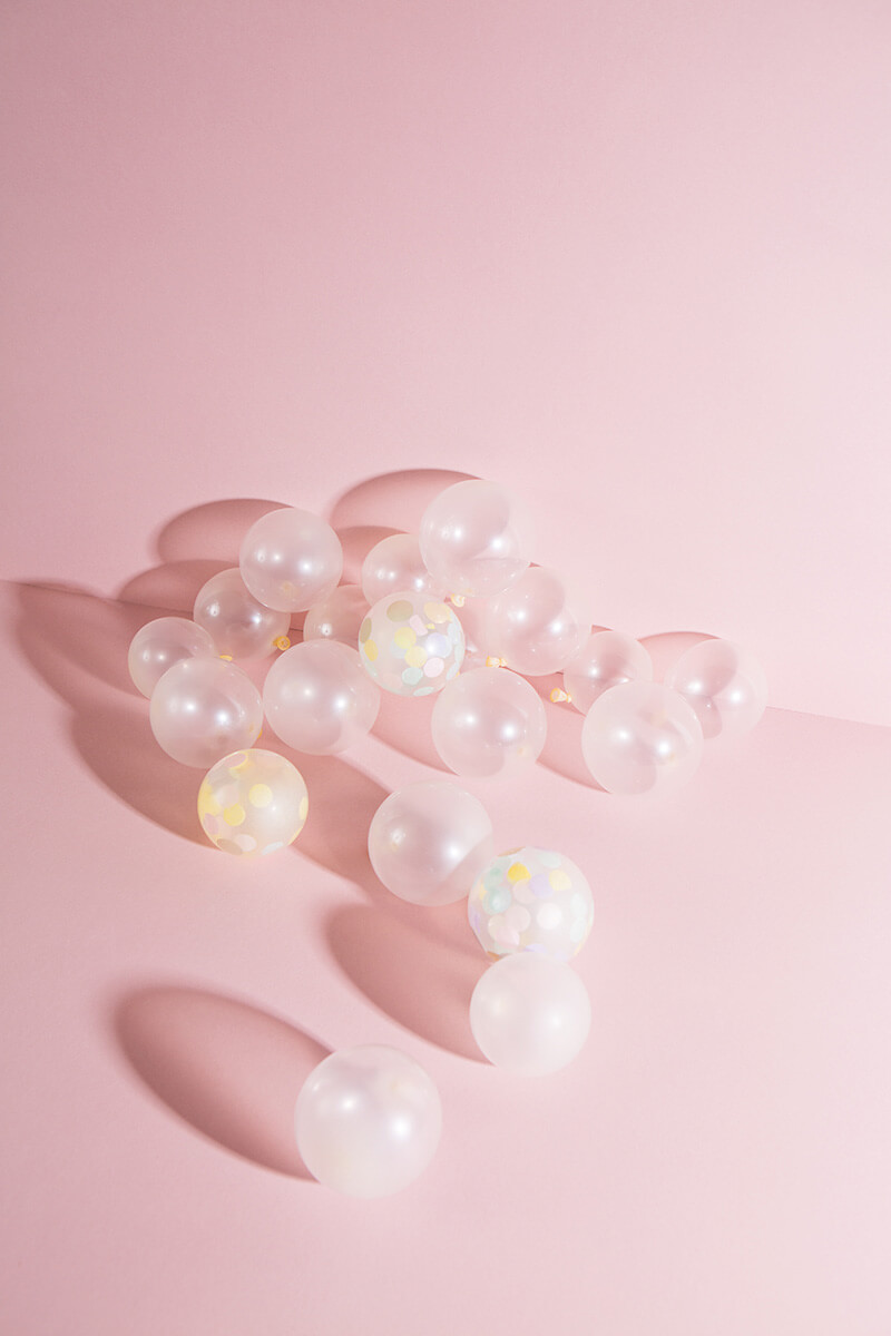 In diese transparente Version lässt sich mit einem Trichter easy Konfetti füllen, dass durch die statische Aufladung wie von Zauberhand an den Ballonwänden haften bleibt.