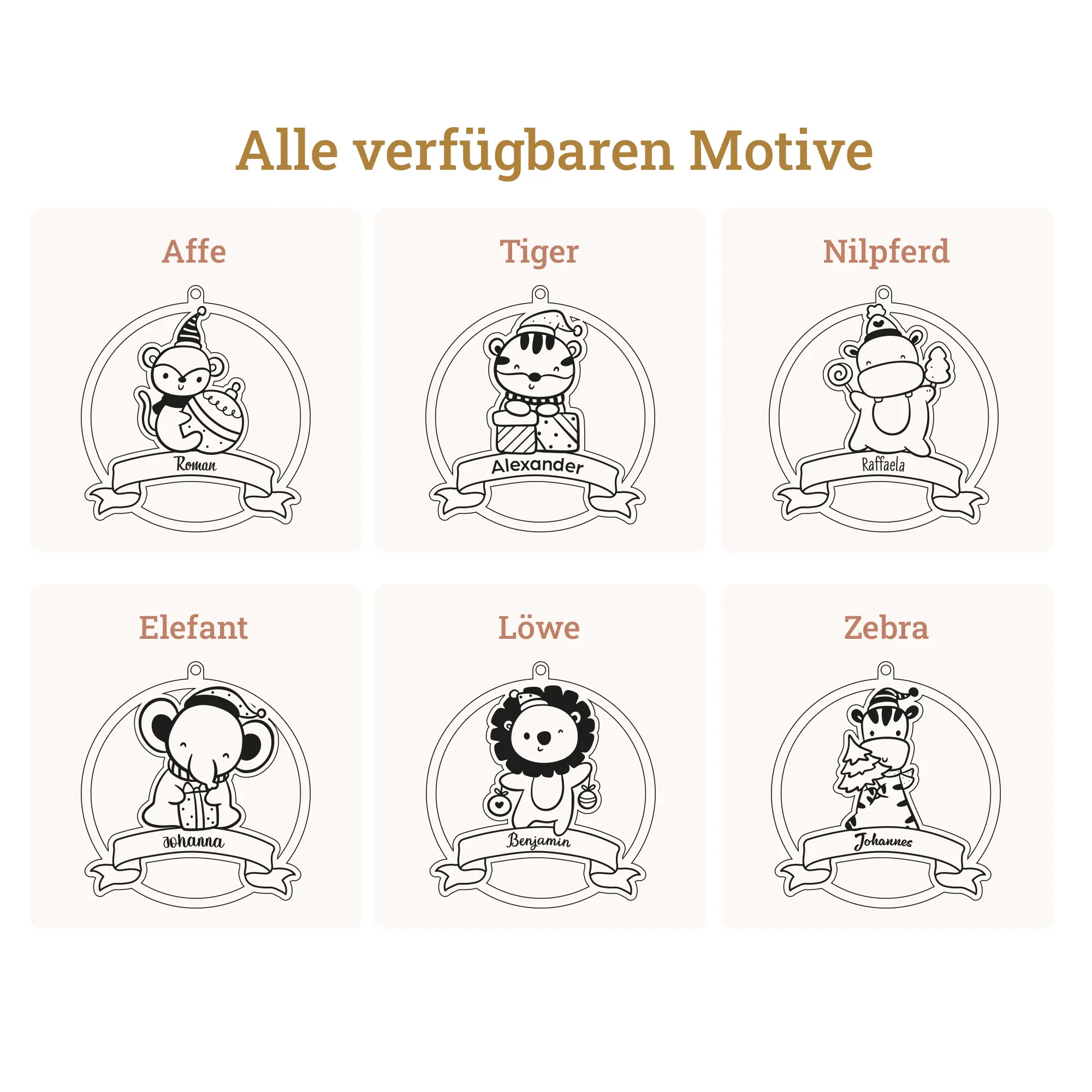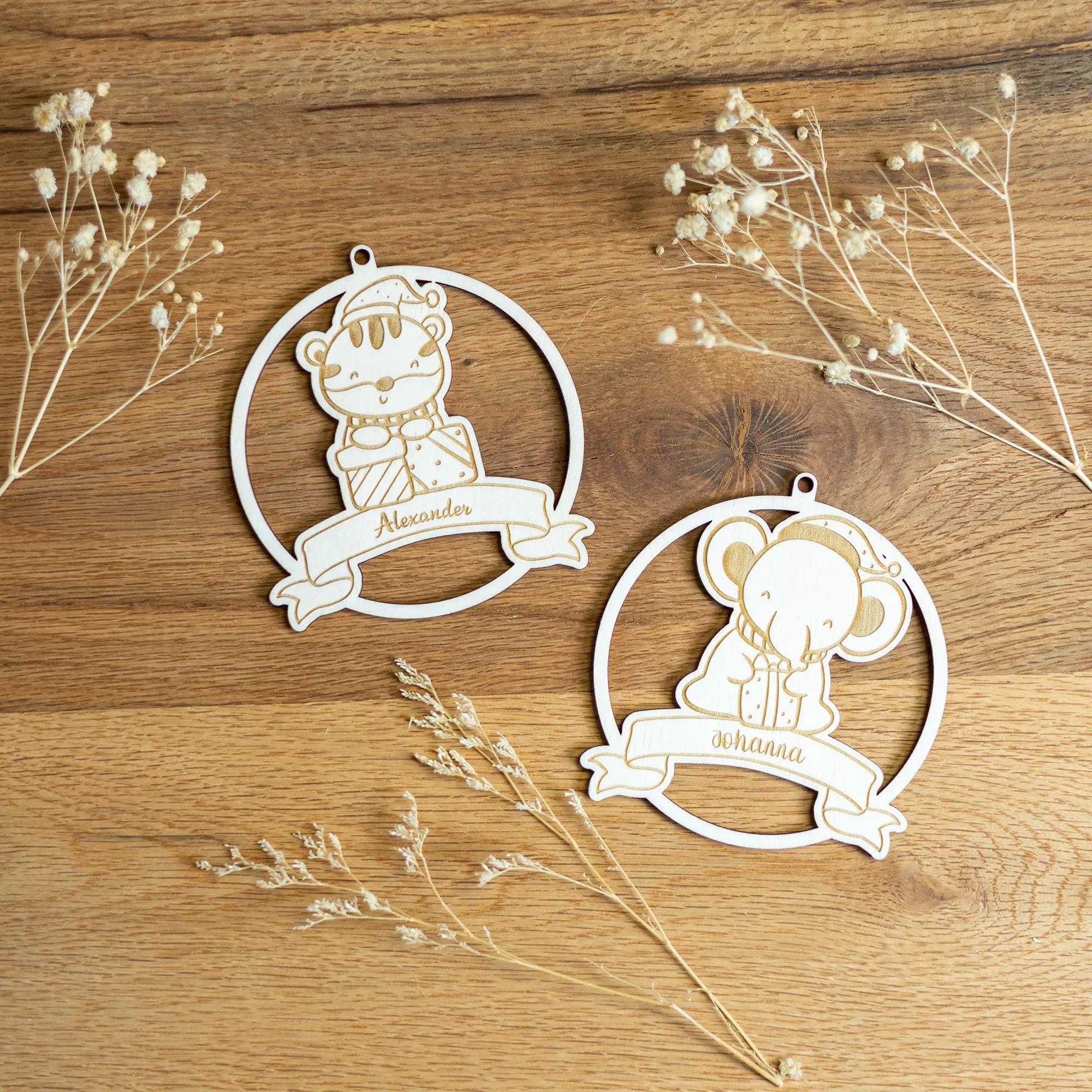 Besonders für Kinder ist Weihnachten ein magisches Fest. Darum bieten wir auch für Eure Kleinen eine ganz spezielle Weihnachtsdekoration. Unsere Weihnachtsbaumanhänger für Kinder sind mit 6 niedlichen Tiermotiven wählbar und können mit dem Namen des Kindes personalisiert werden. So hat Euer Kind seinen ganz persönlichen Anhänger am Baum. Neben der Funktion als Weihnachtsbaumkugel lässt er sich zudem prima als Namenskarte an Geschenke anbringen. Durch das unbehandelte Holz ist er eine nachhaltige Alternative zu Kunststoffschmuck und sieht zudem noch sehr schick aus.