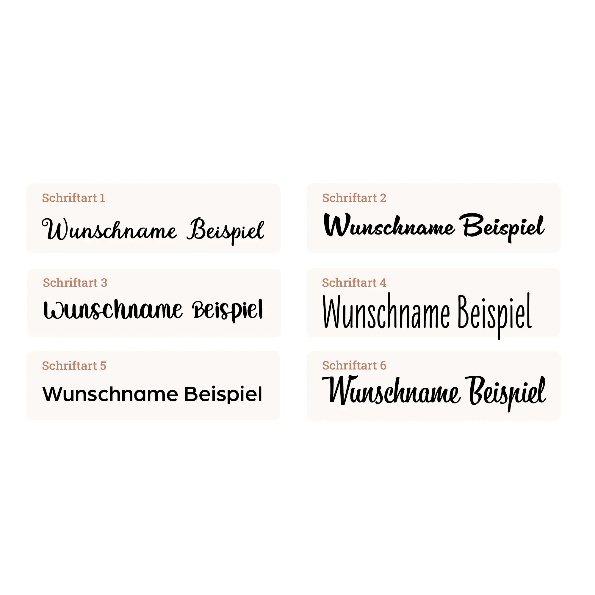 Wählt zum bestellen einfach Euer Lieblingsmotiv, die Größe und eine von 6 Schriftarten zur Personalisierung aus und schon könnt Ihr Euren Kindern oder Enkeln eine Überraschung machen.
