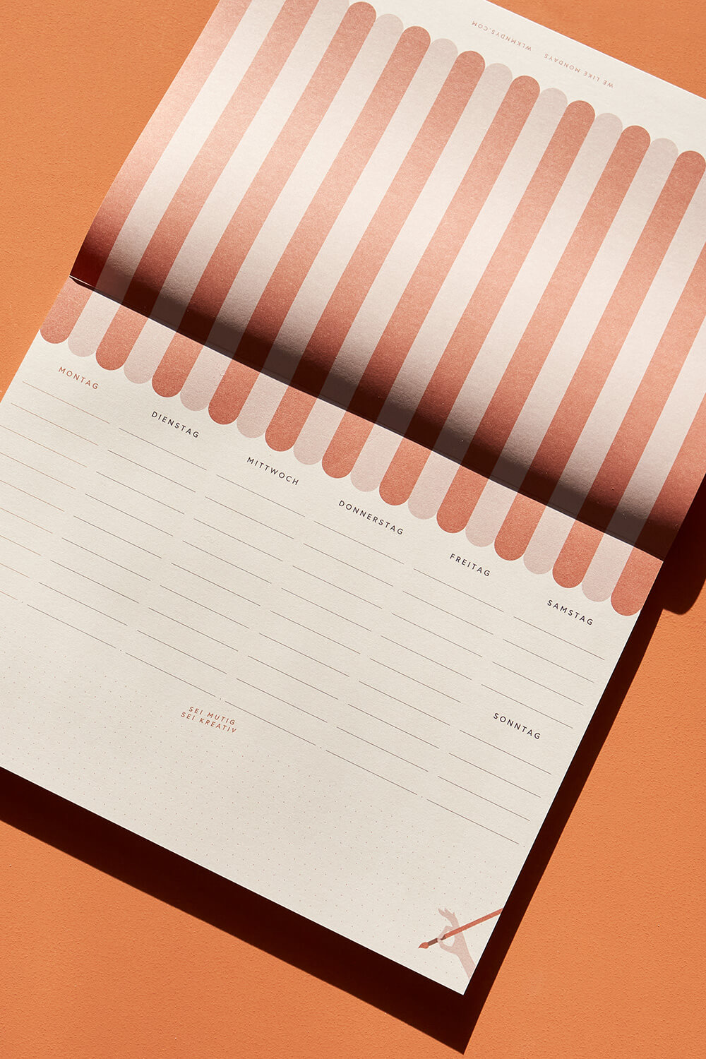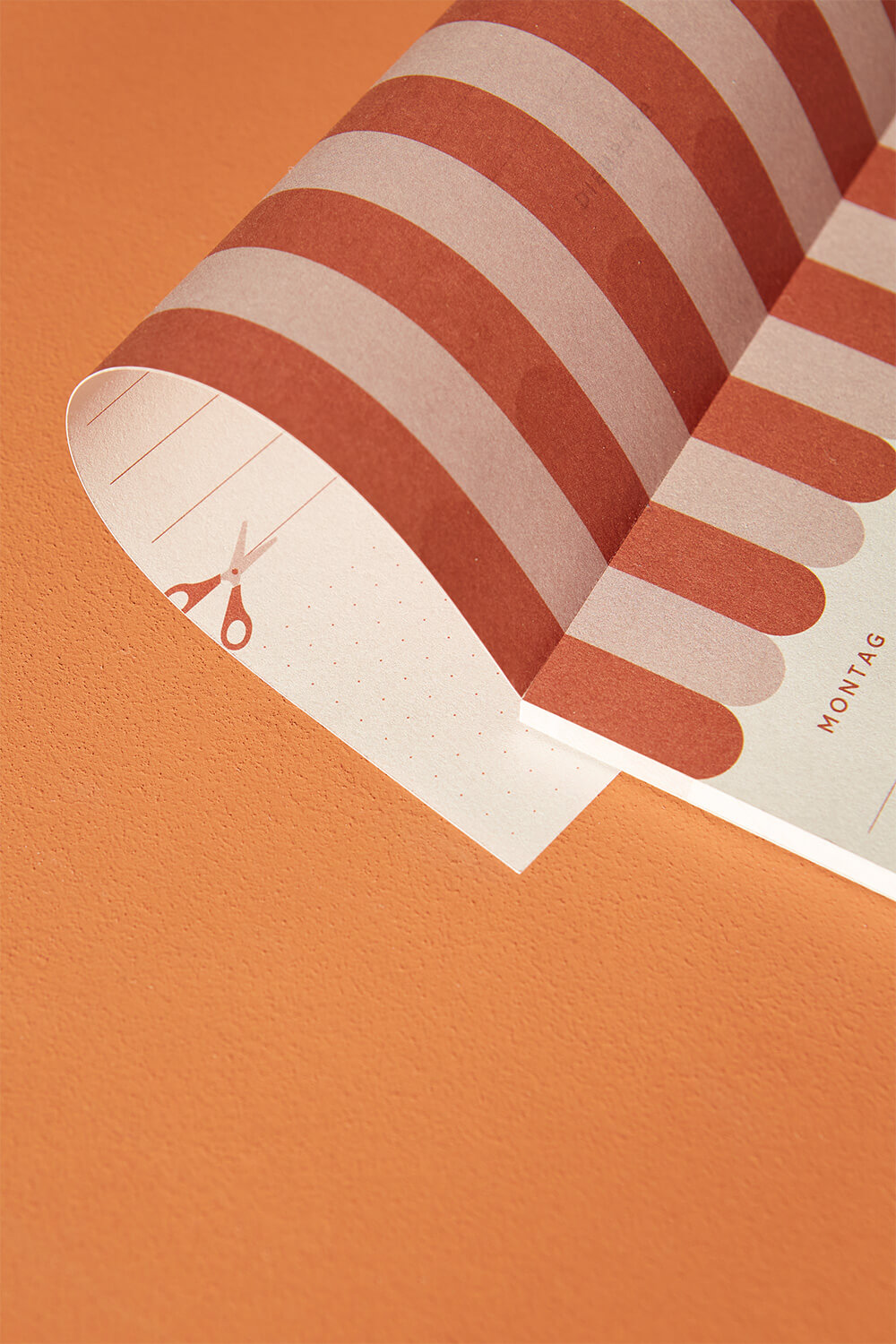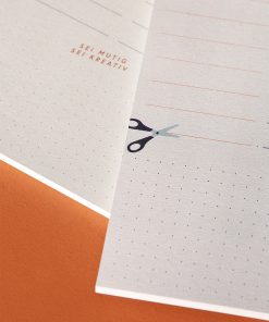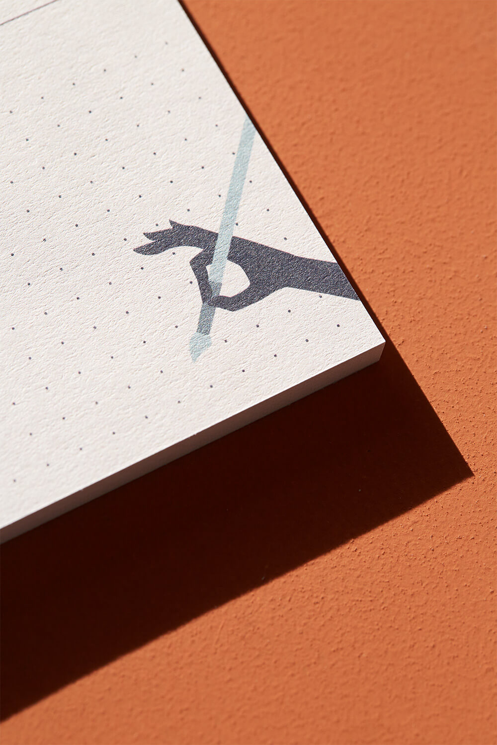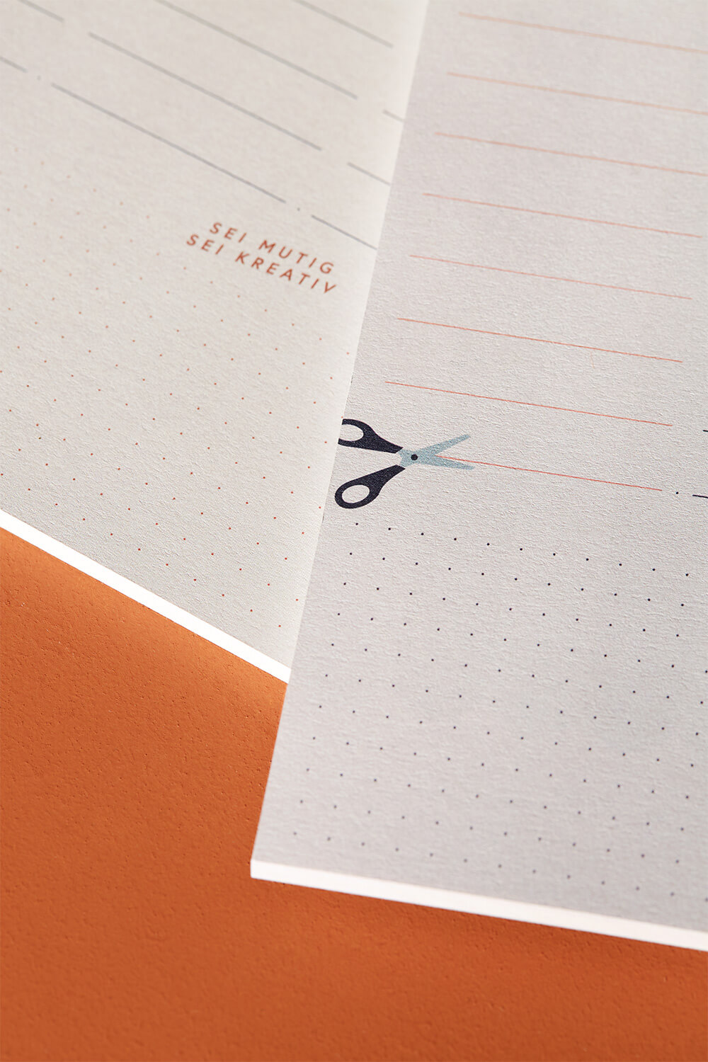 Der Block ist am Kopf geleimt und prall gefüllt mit 50 Seiten zum einfachen Abreißen. Das hochwertige Papier hat eine leicht “roughe” Haptik und lässt sich super beschreiben.