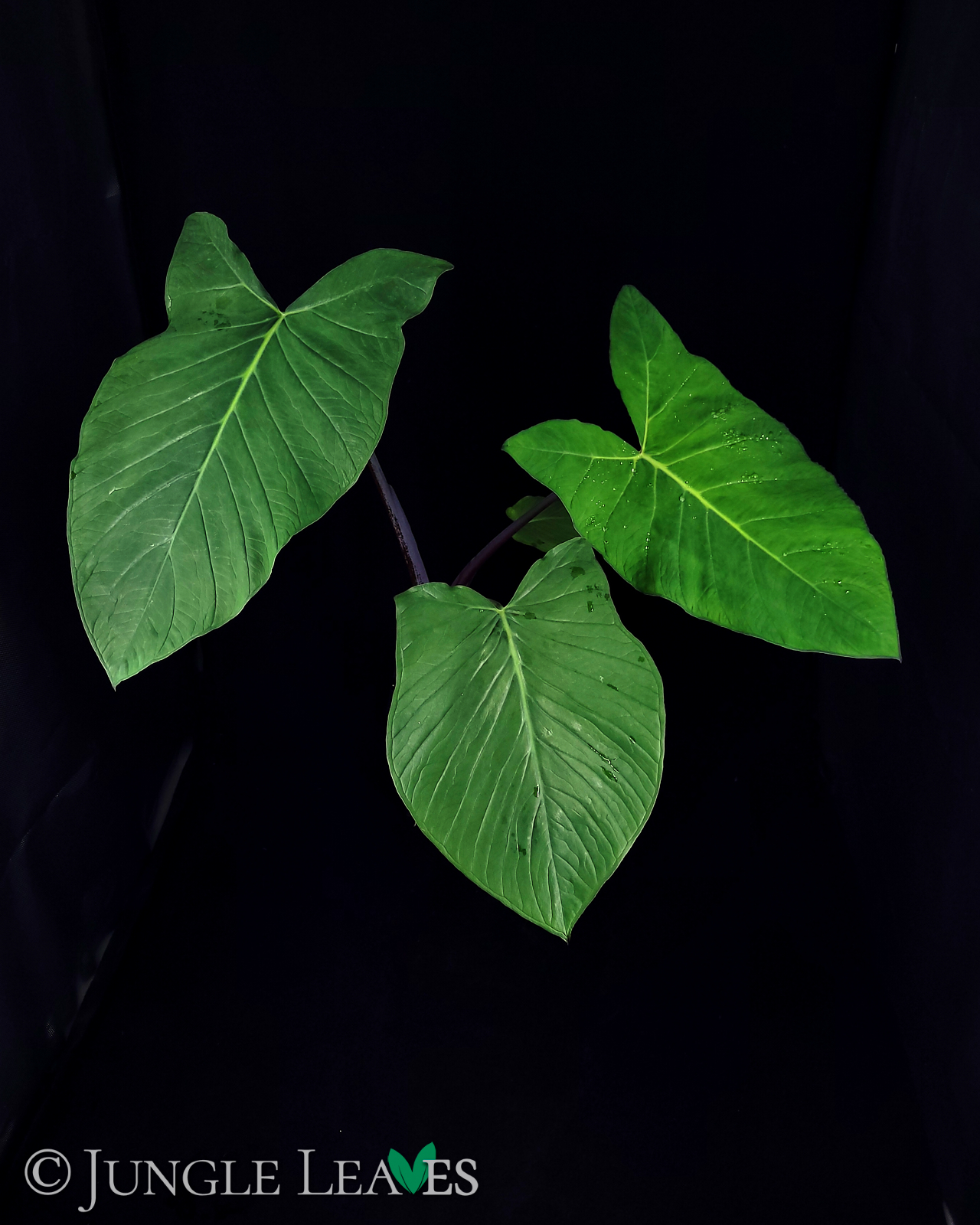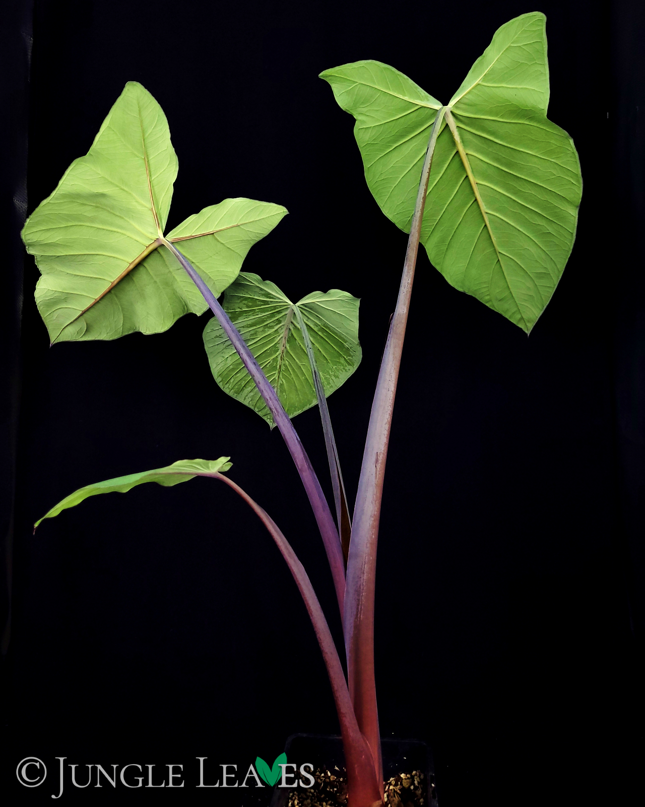 Kleine Notiz zum Namen: Vor einiger Zeit wurde der Name Xanthosoma violaceum mit Xanthosoma saggitifolium synonymisiert, es gibt ihn also eigentlich gar nicht mehr. Wir verwenden ihn hier für diese Form trotzdem weiter, da sie sich deutlich von dem einheitlich grünen „normalen“ X. saggitifolium unterscheidet.
